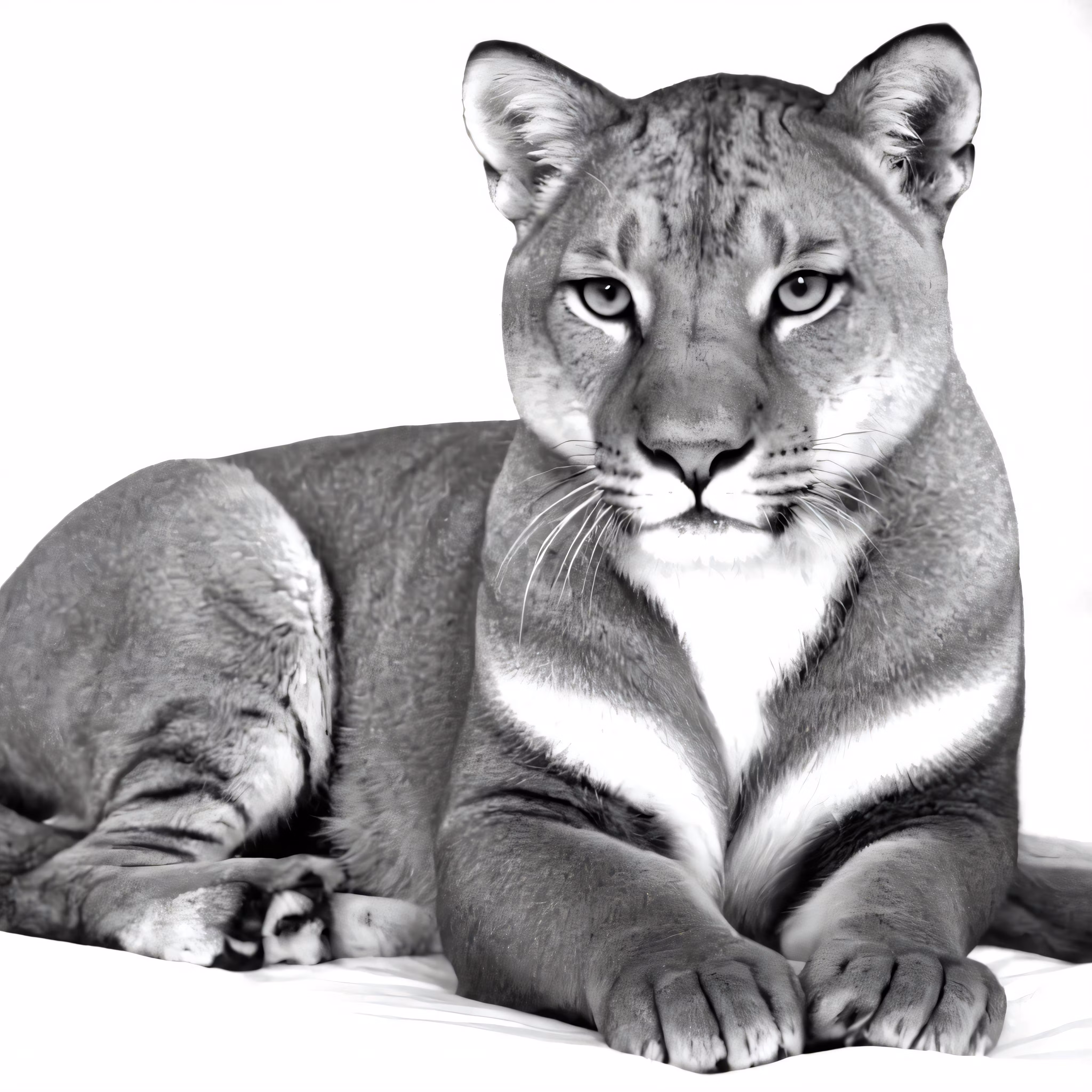 High resolution picture, free to use, a close   up of a mountain lion in black and white
