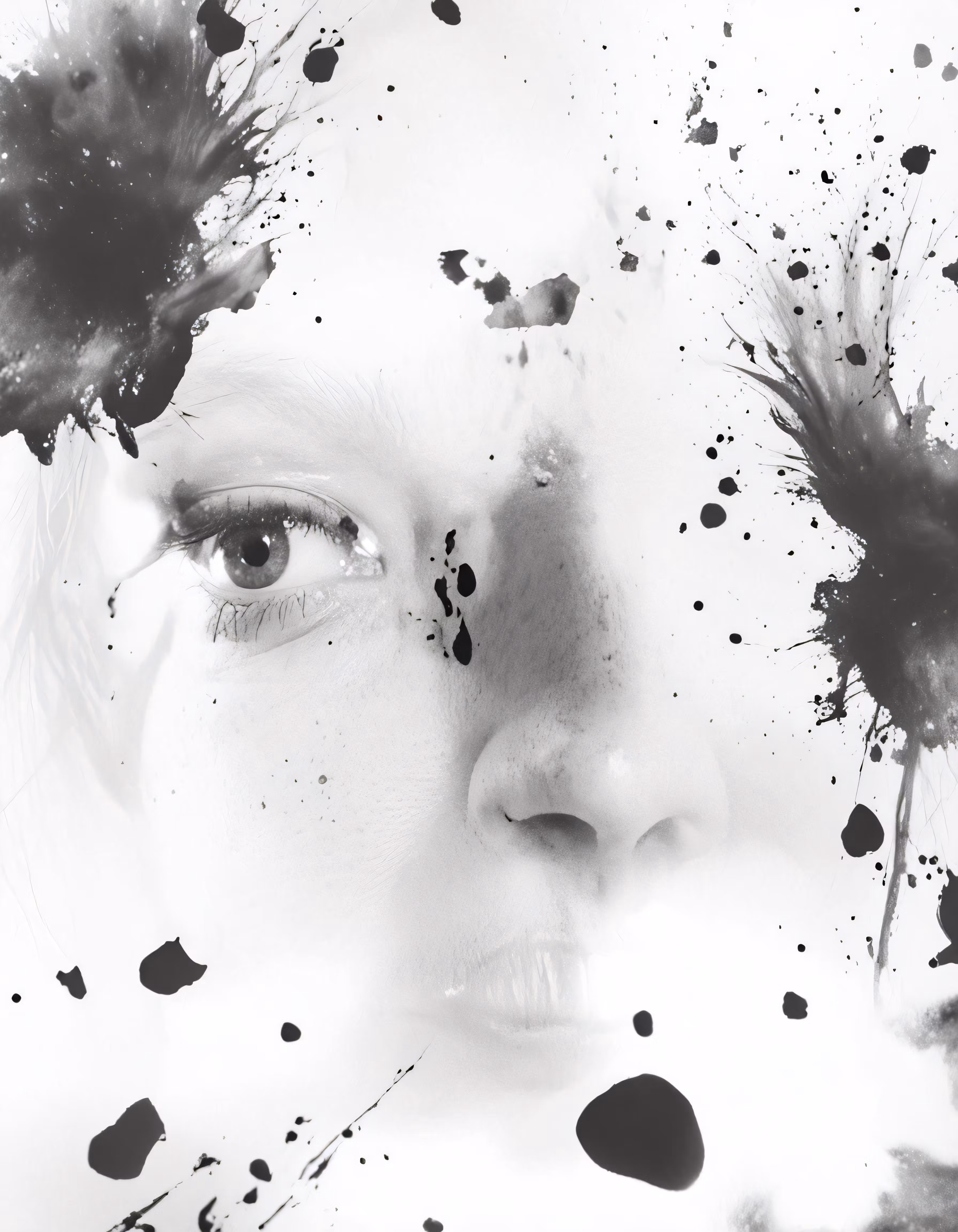 High resolution picture, free to use, a close   up of the face of a person with black ink stains