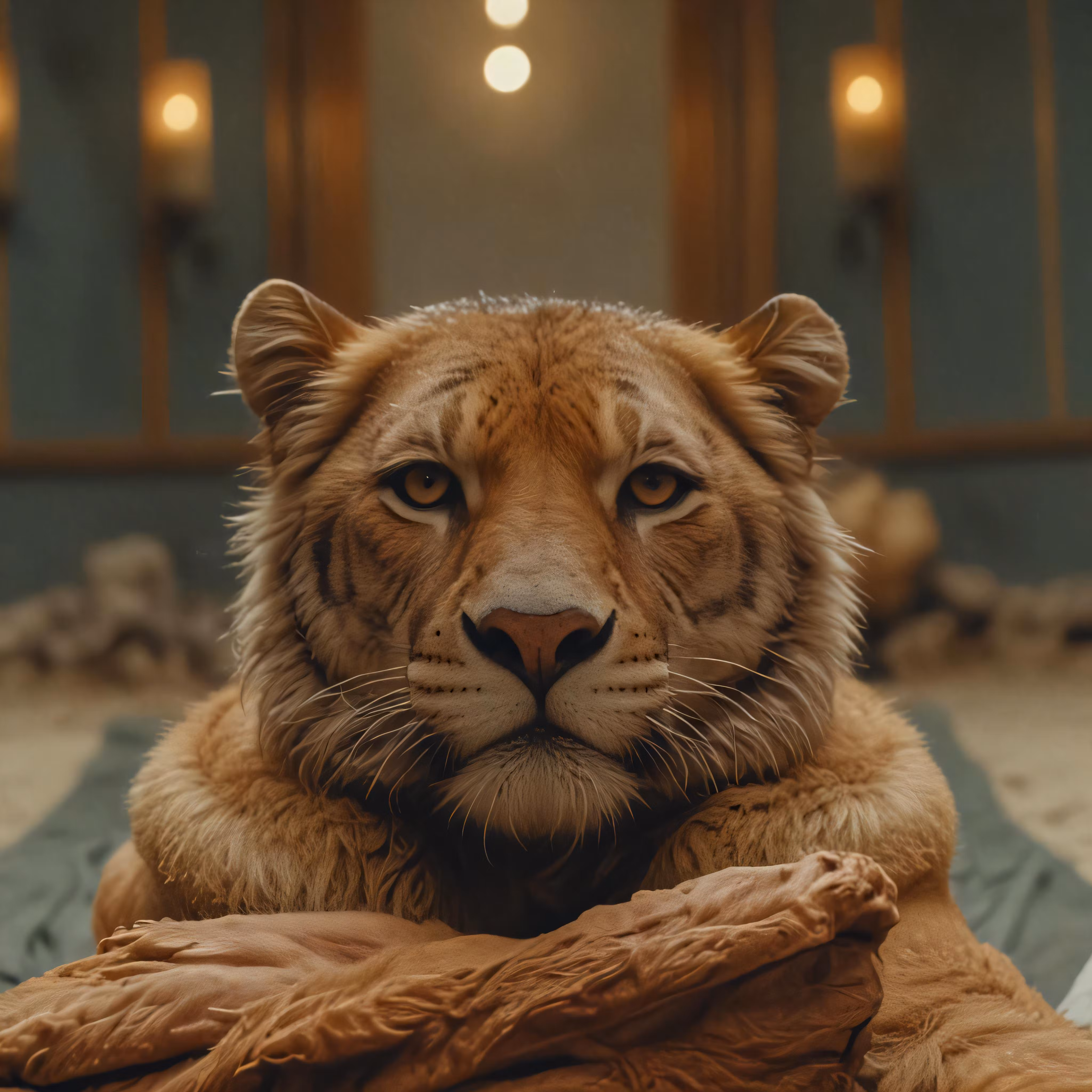High resolution picture, free to use, a close   up view of a tiger lying on a bed