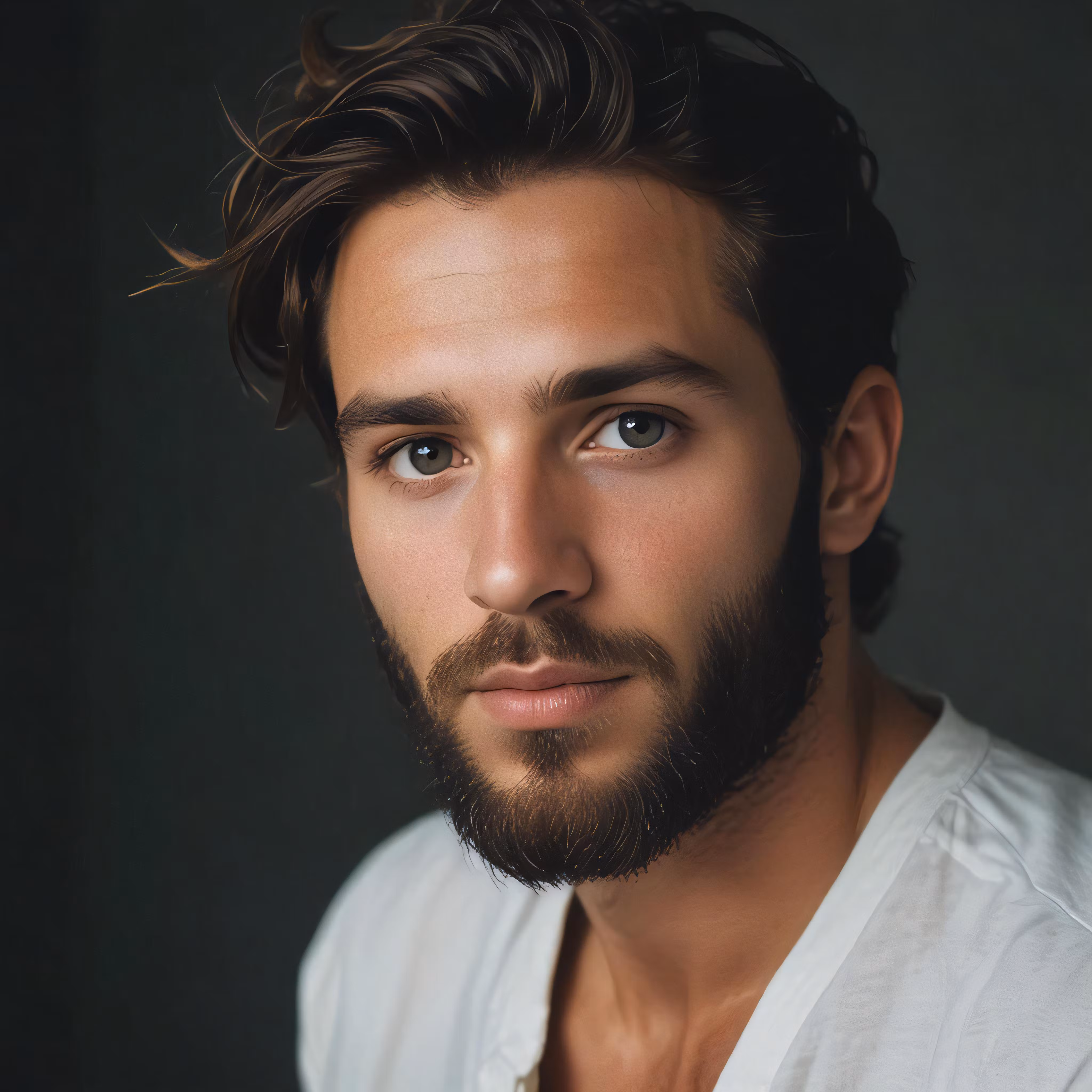 High resolution picture, free to use, a close up image of a man with long hair and beard
