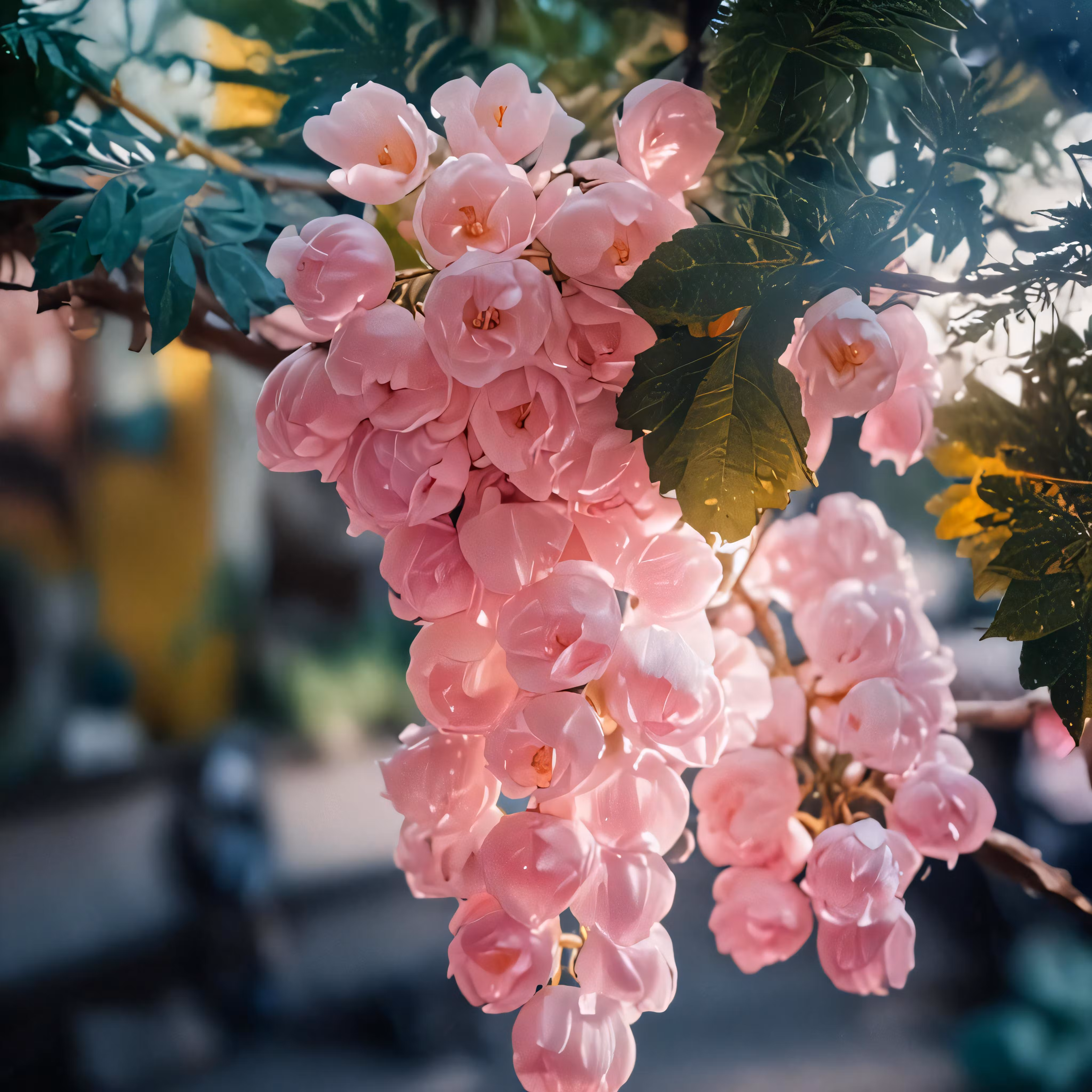 High resolution picture, free to use, a close up of a bunch of pink flowers on a tree branch