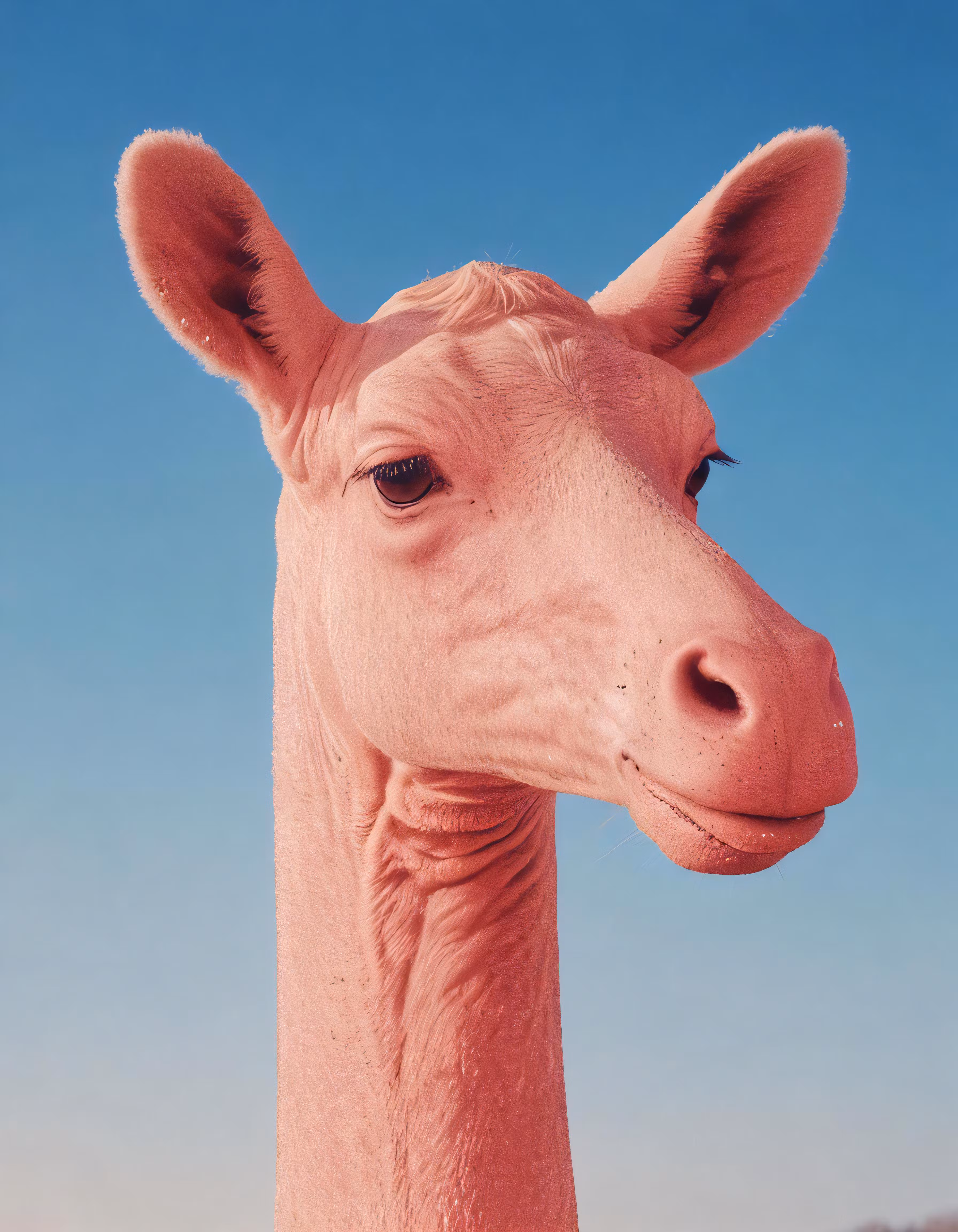 High resolution picture, free to use, a close up of a giraffe face in the sky