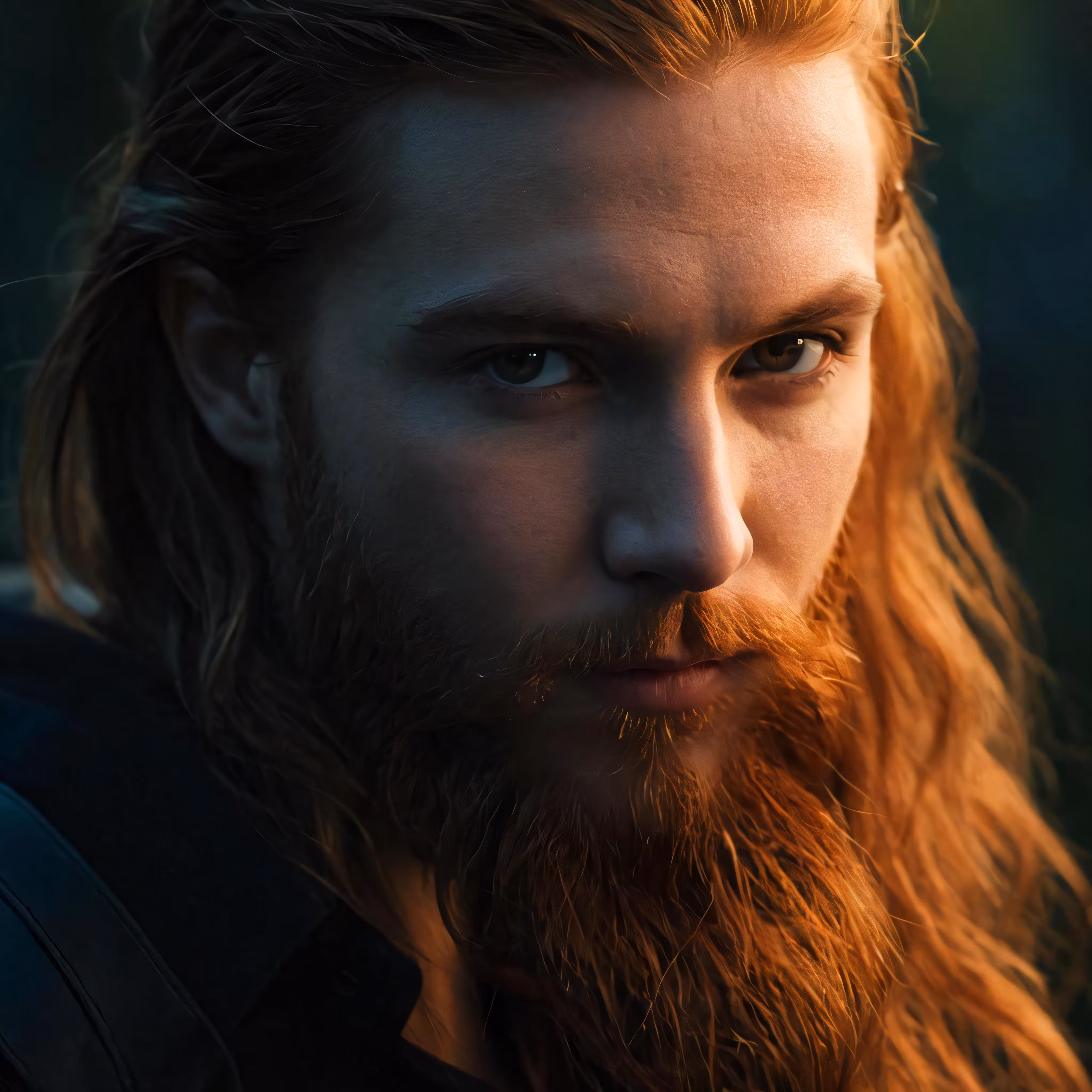 High resolution picture, free to use, a close up of a man with long red hair and beard