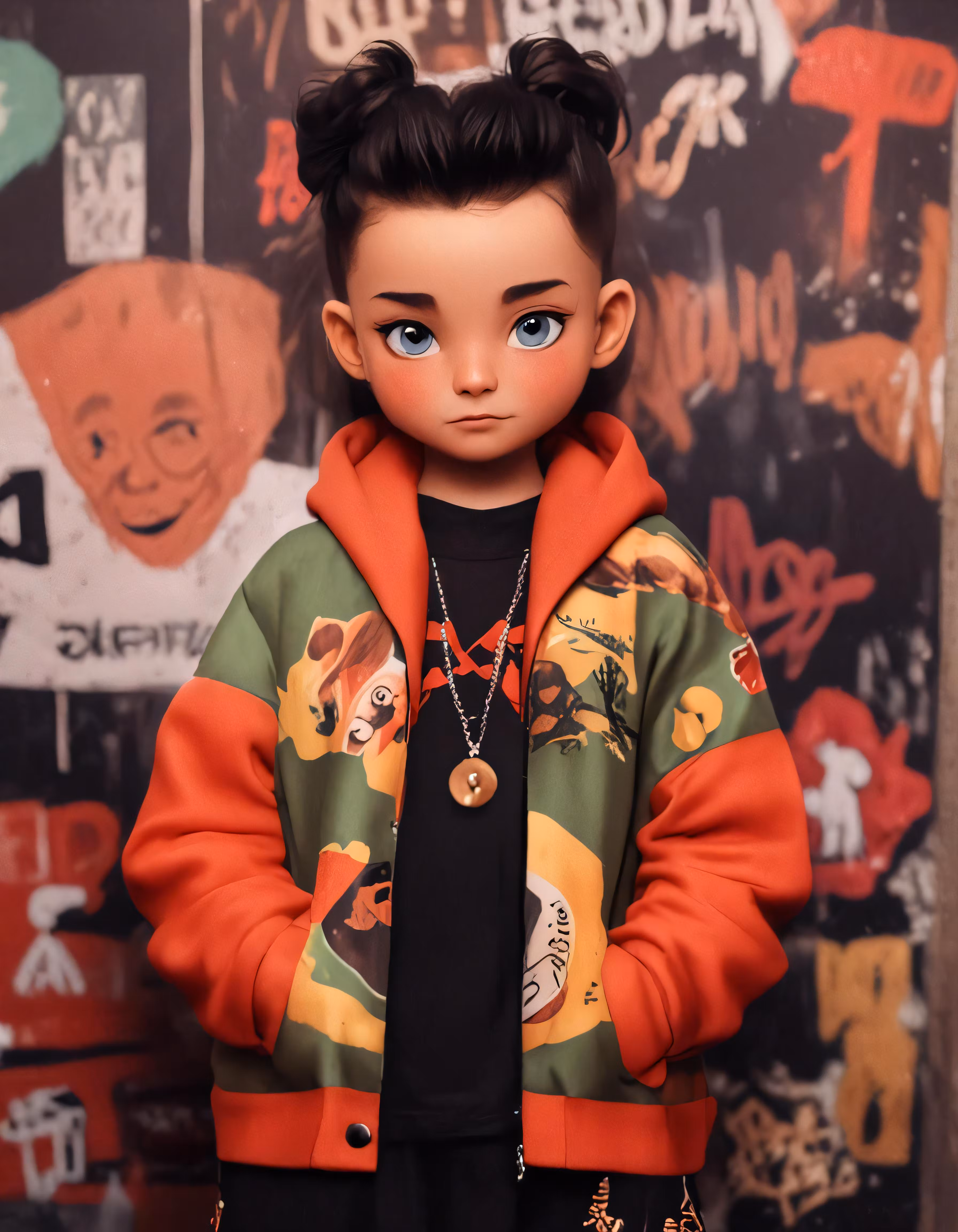 High resolution picture, free to use, a close up of a person in a jacket and some graffiti