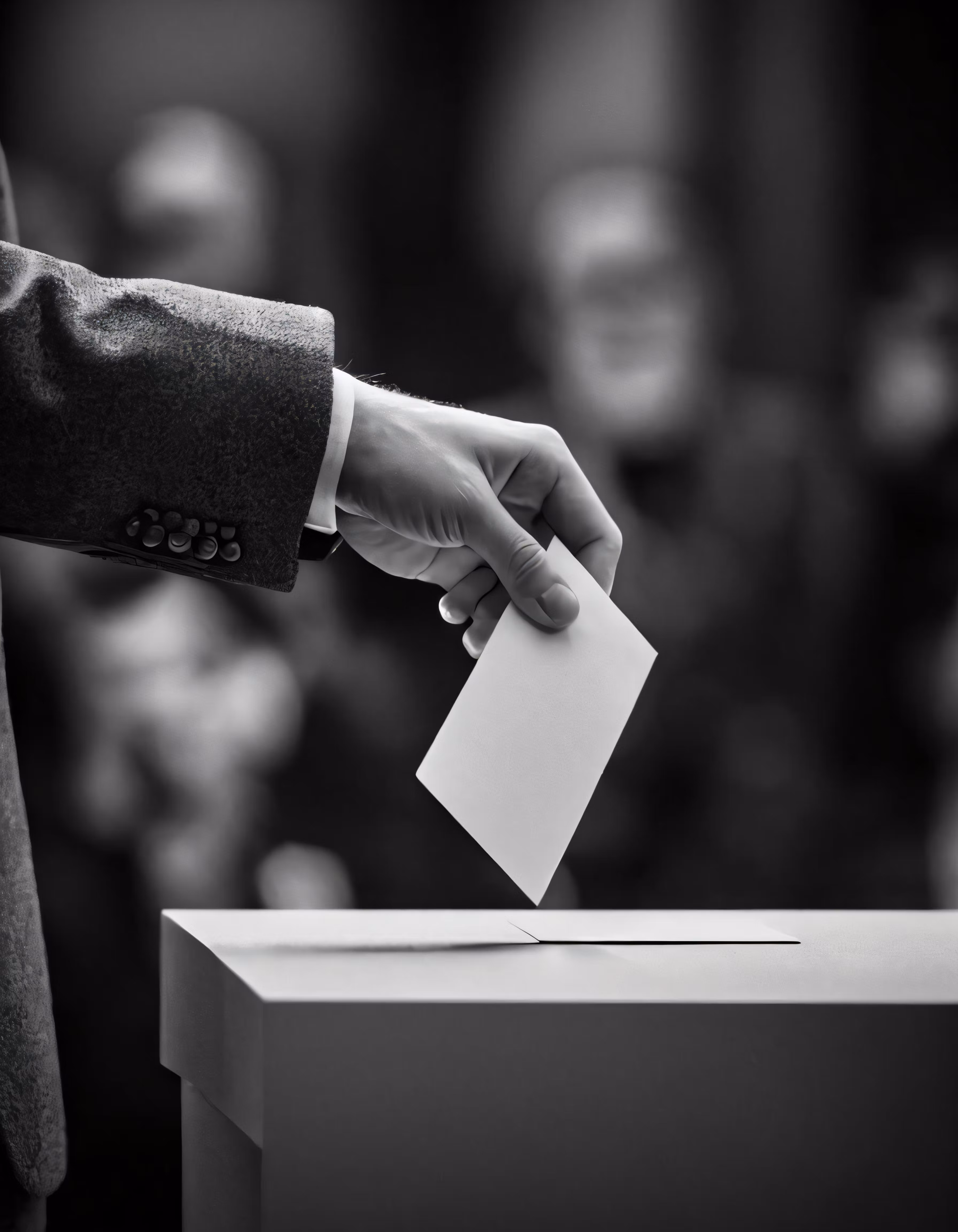 High resolution picture, free to use, a close up of a person throwing a paper into a voting box