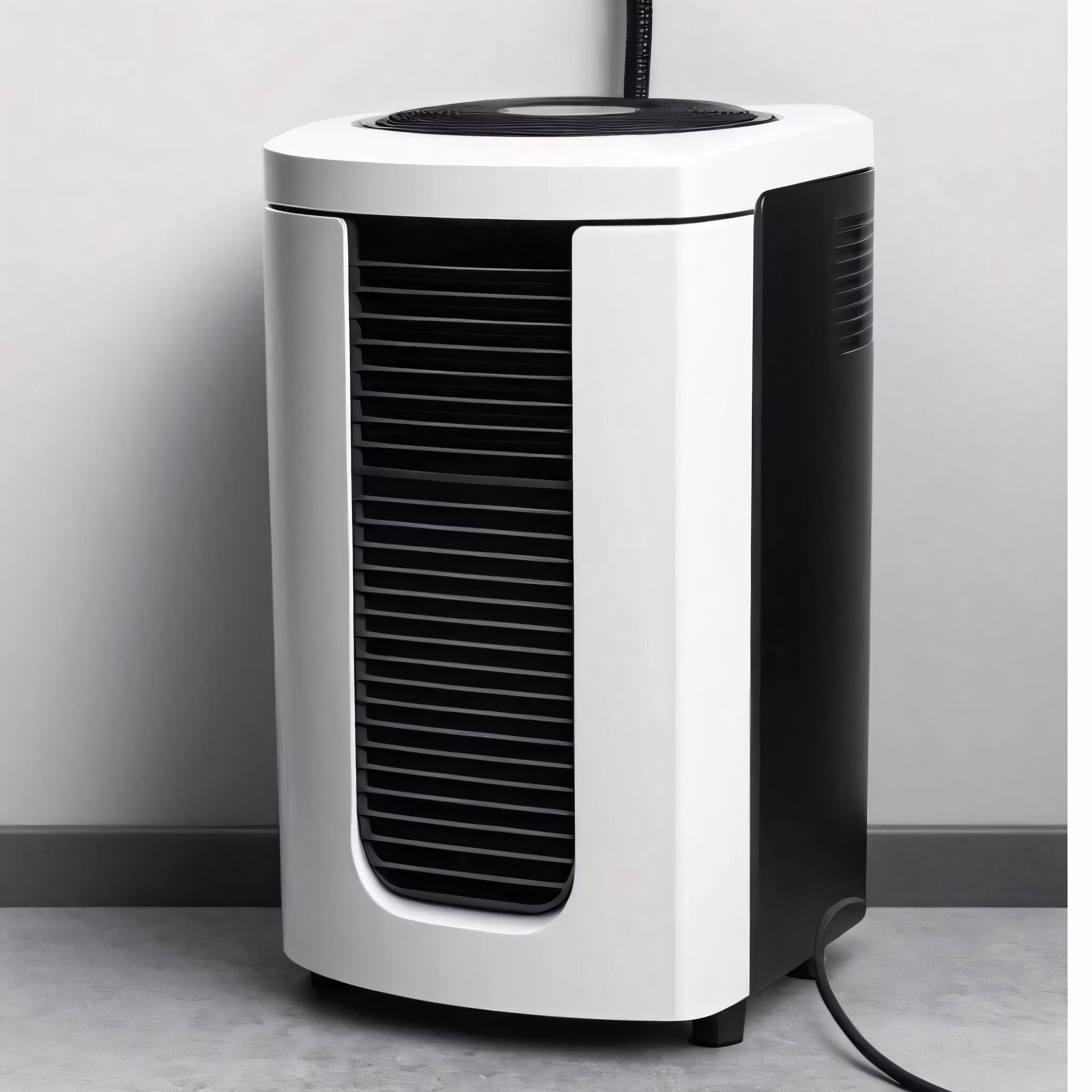 High resolution picture, free to use, a close up of a small air purigerator in front of a wall