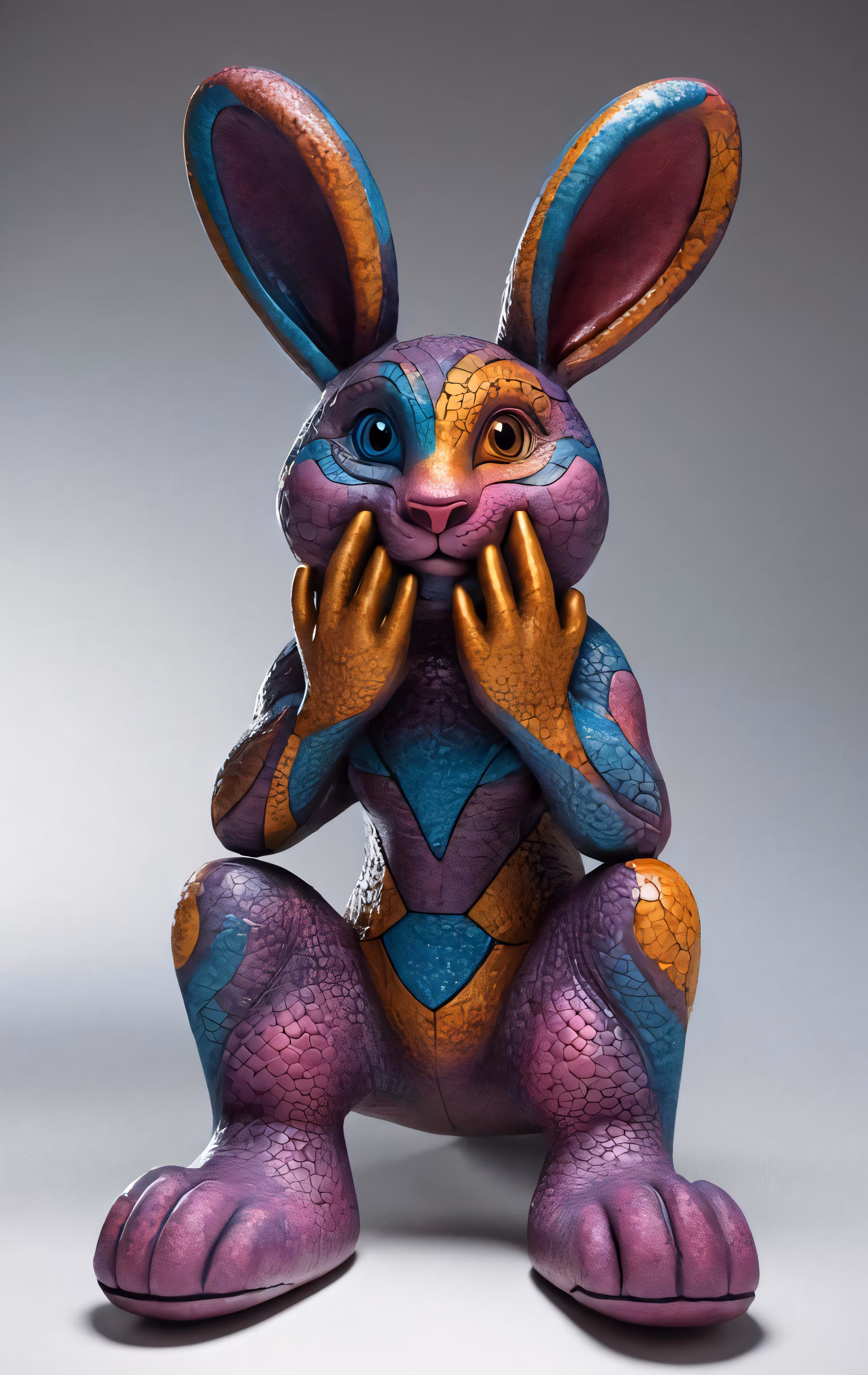 High resolution picture, free to use, a close up of a statue of a rabbit with one hand on its face