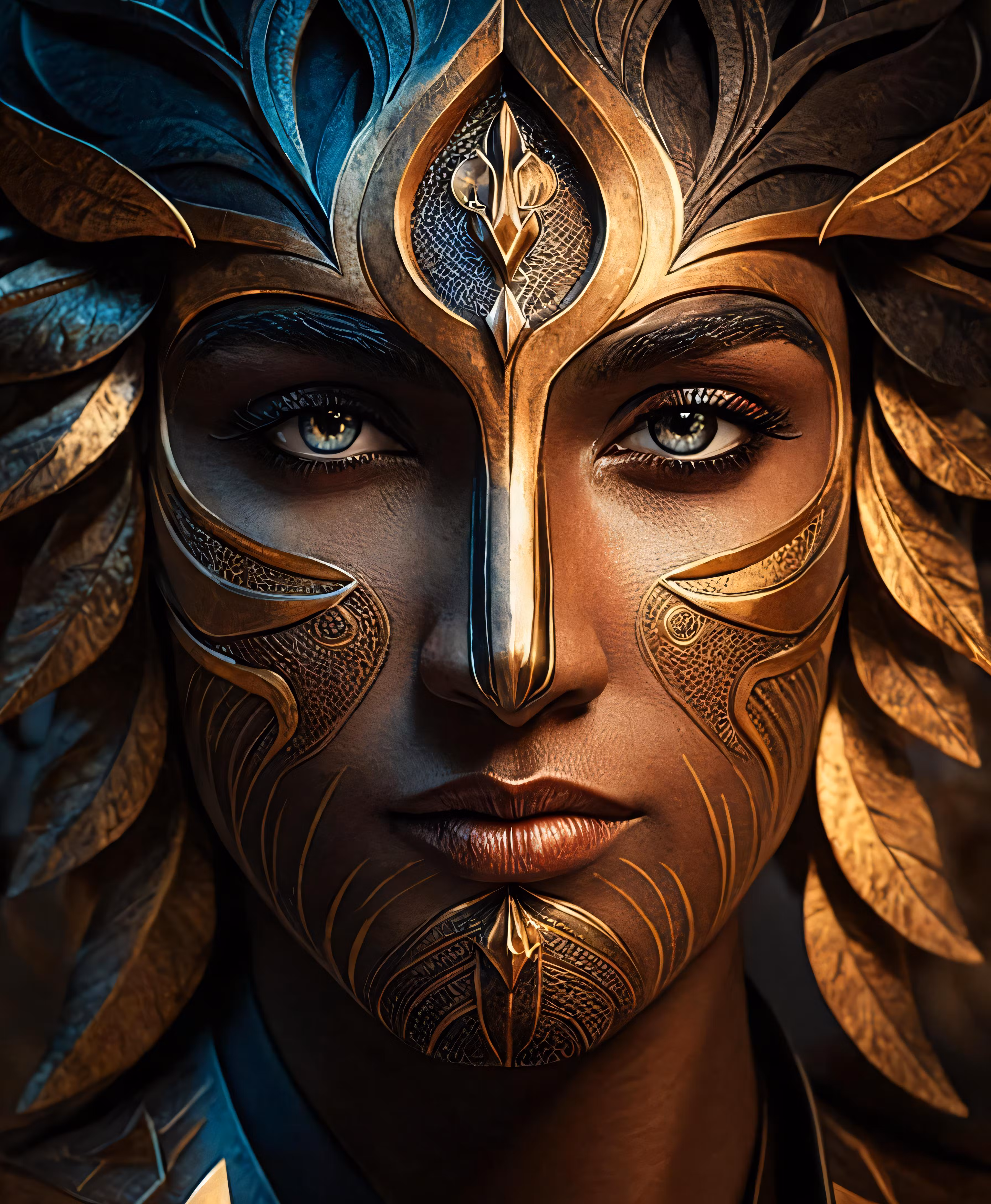 High resolution picture, free to use, a close up of a woman with gold makeup
