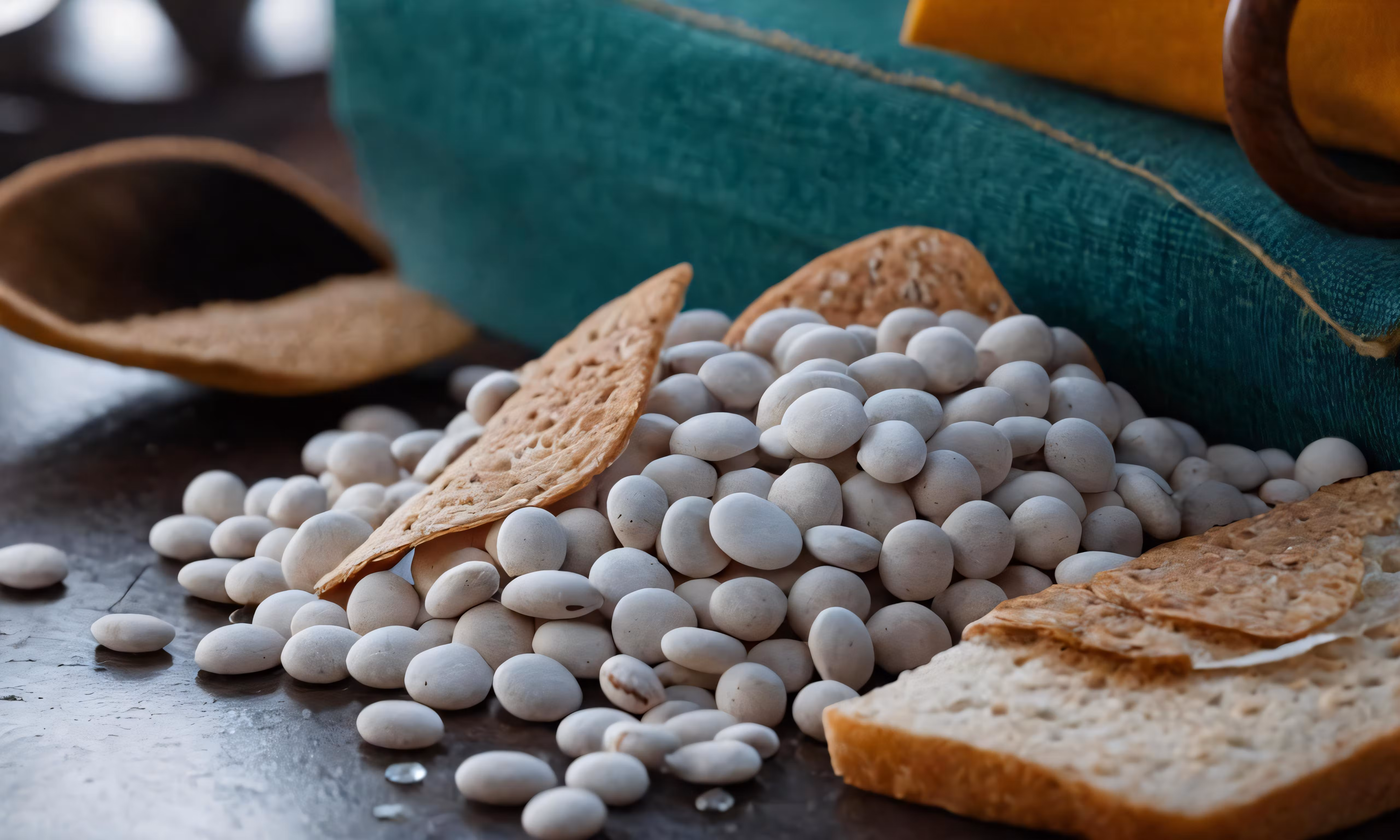 High resolution picture, free to use, a close up of bread, candy, and grains on a counter