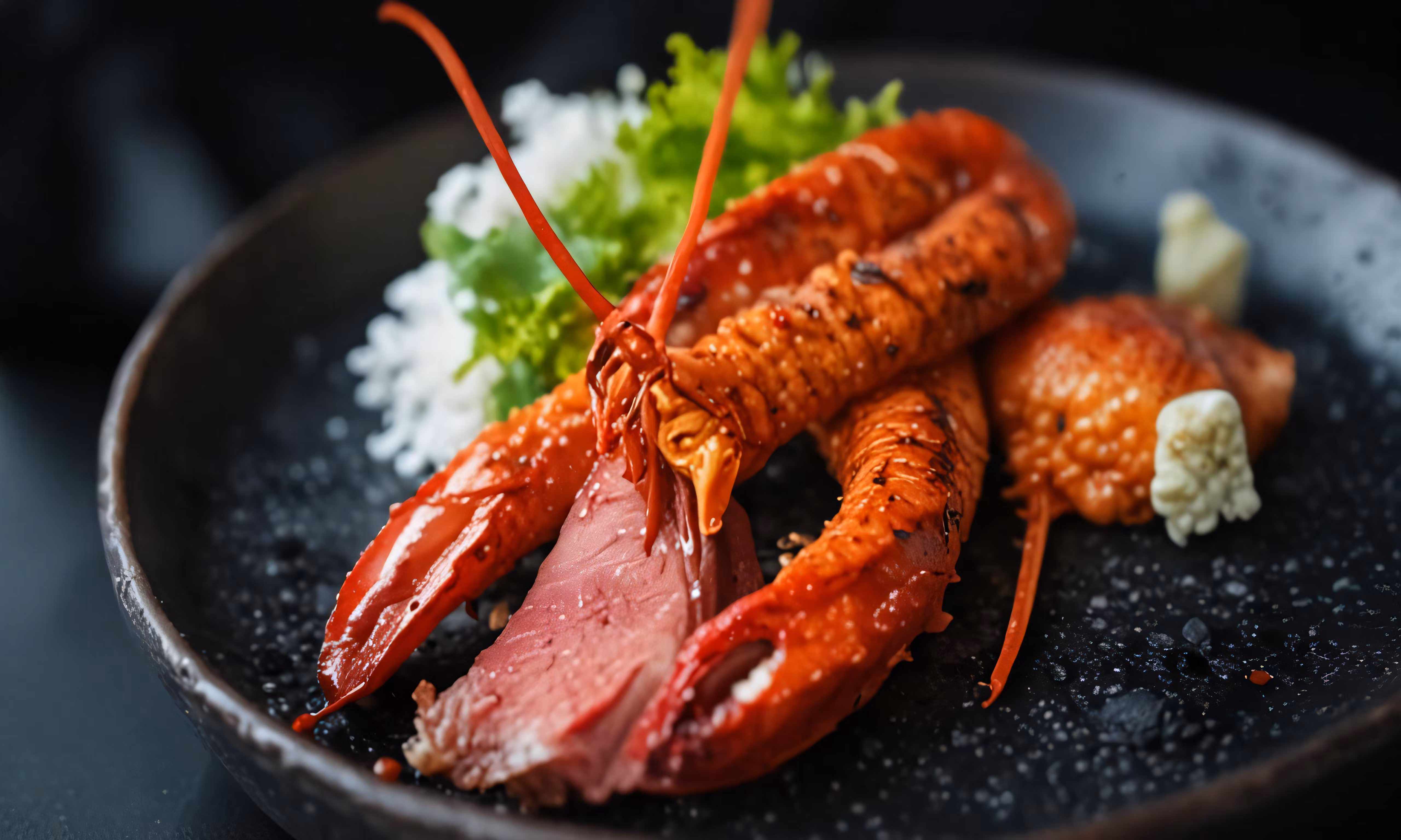 High resolution picture, free to use, a close up of lobster on a plate with greens