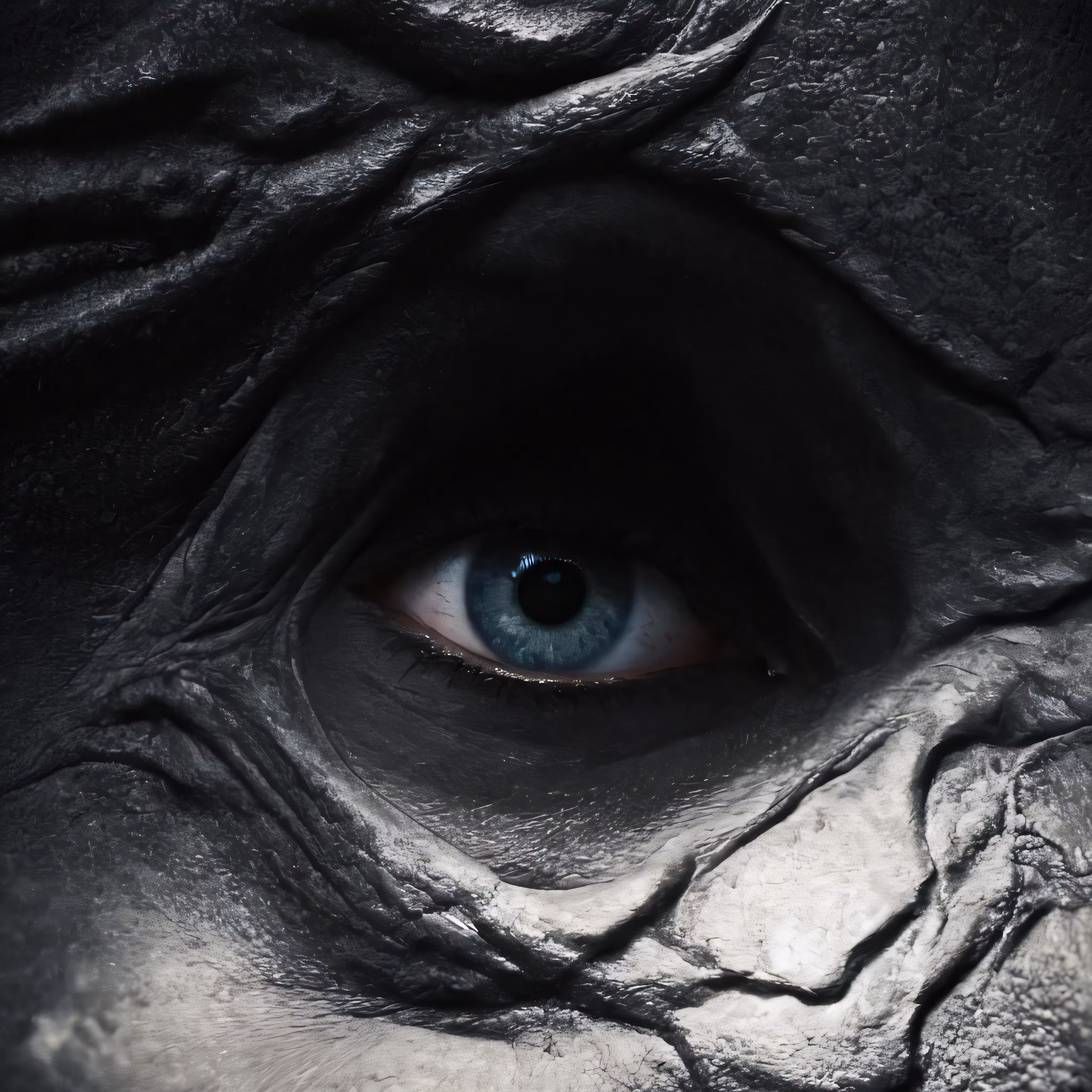 High resolution picture, free to use, a close up of the face and eye of an adult scary looking person