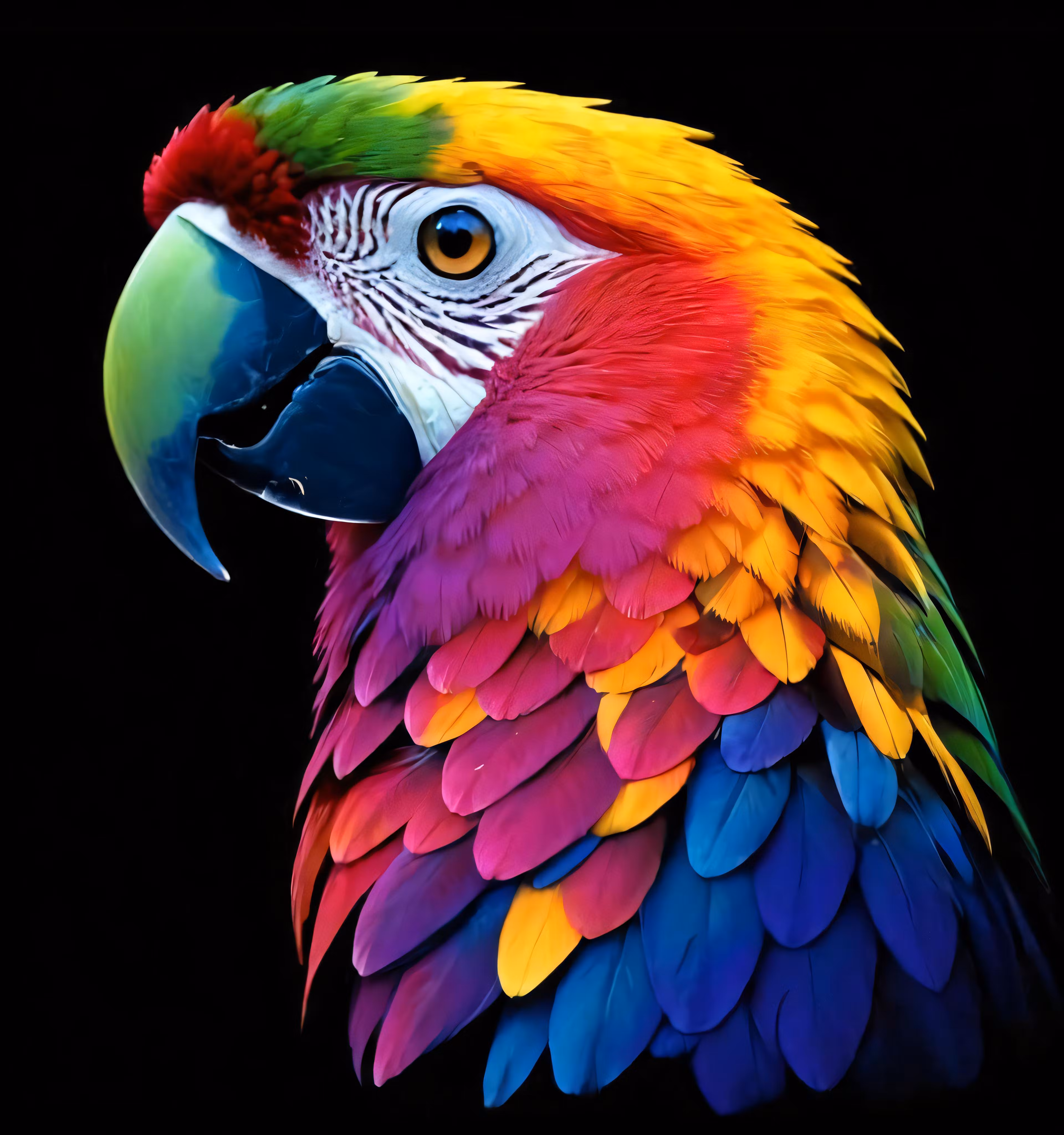 High resolution picture, free to use, a close up photo of a colorful parrot