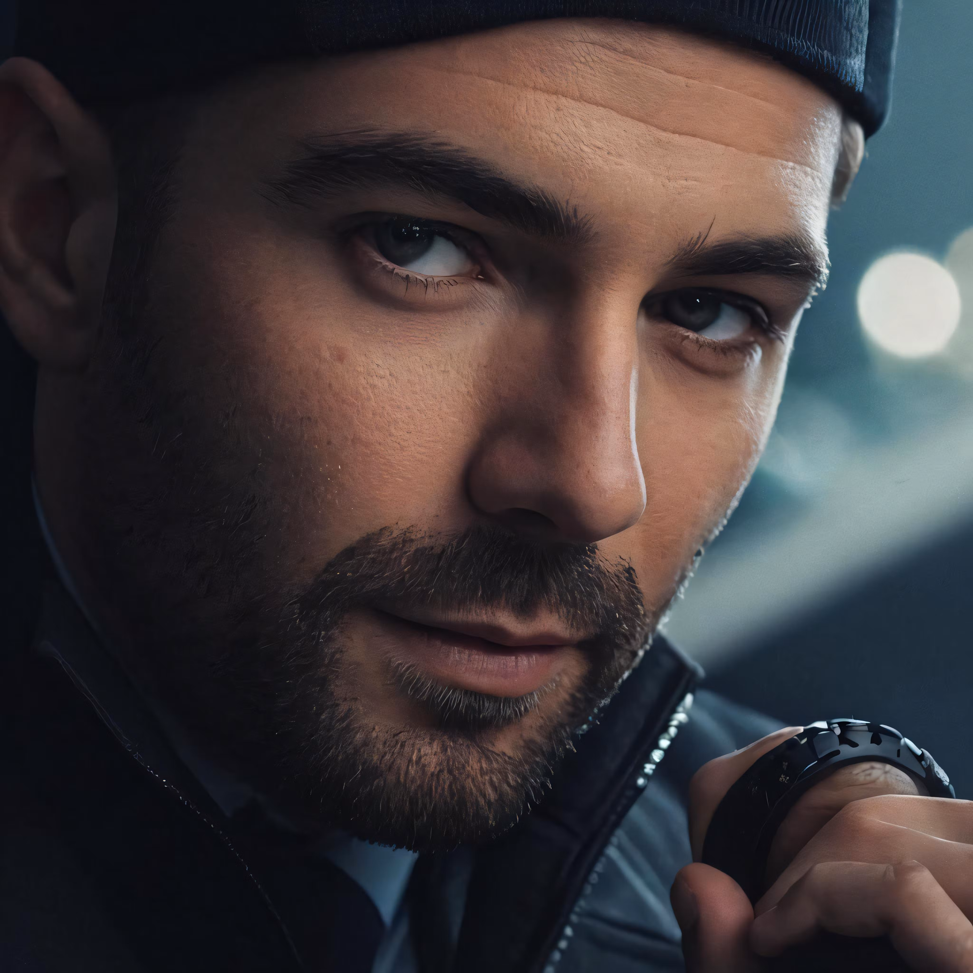 High resolution picture, free to use, a close up shot of a man in a cap, jacket and glove
