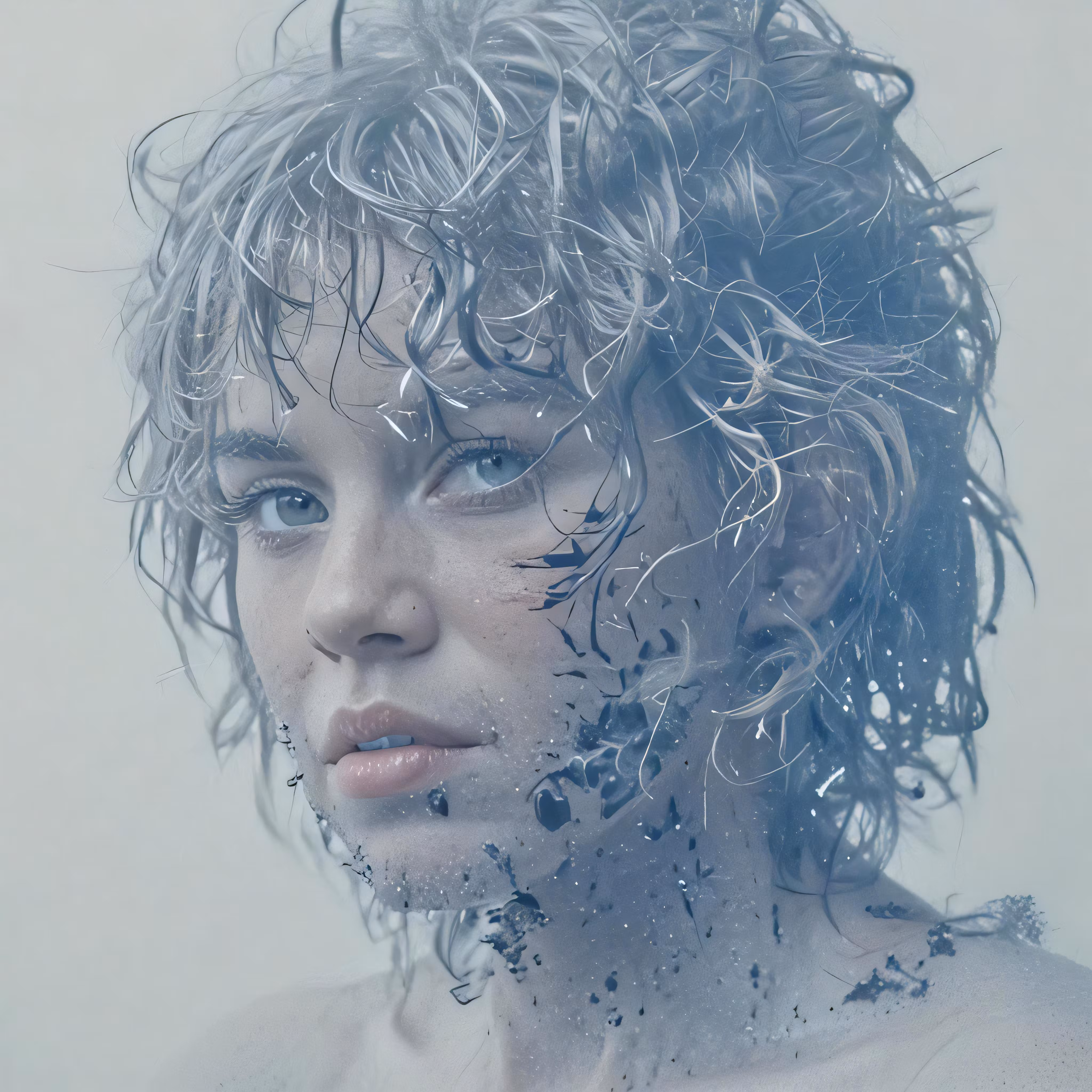 High resolution picture, free to use, a close up shot of the face of a woman with water all over her