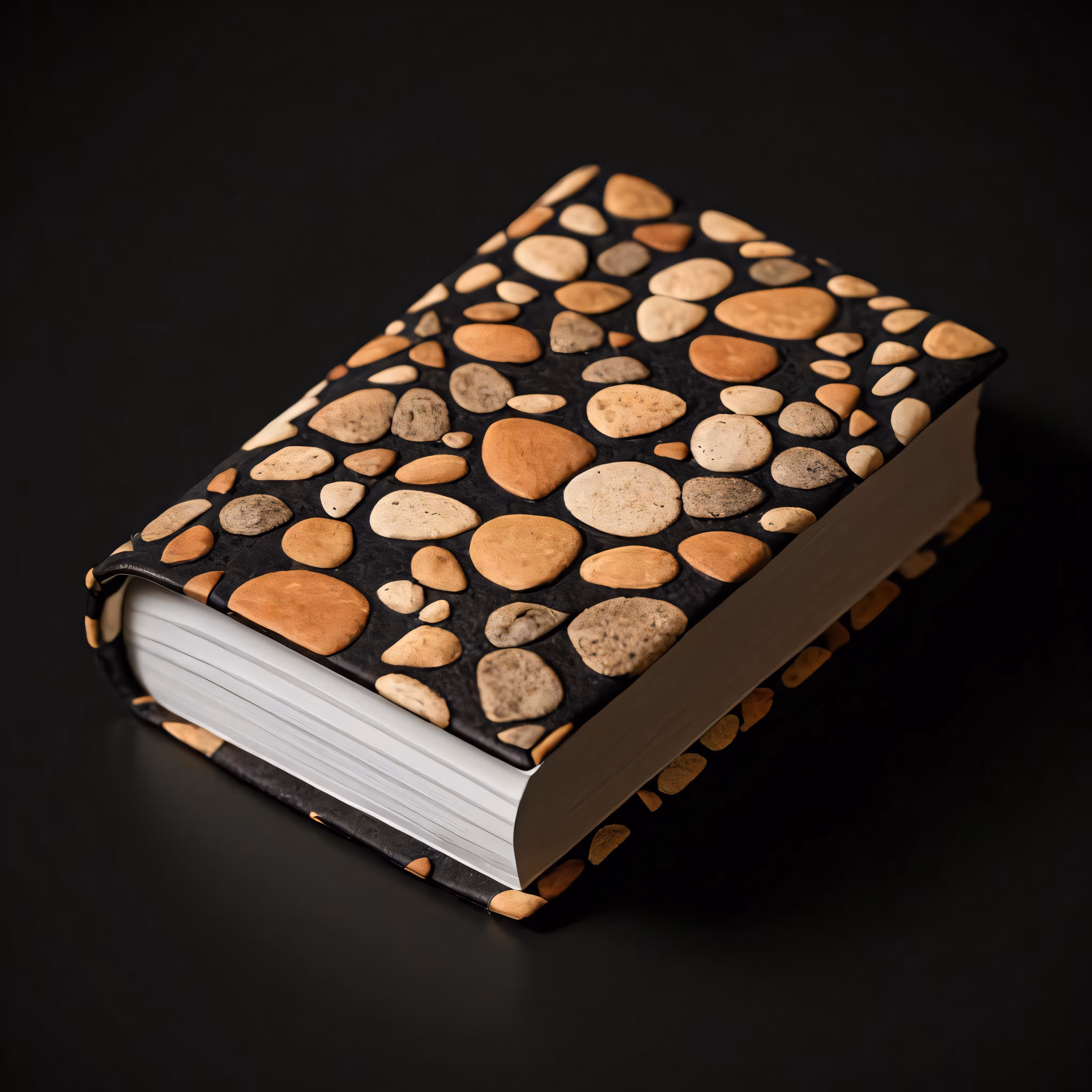 High resolution picture, free to use, a close up view of a book covered with rocks