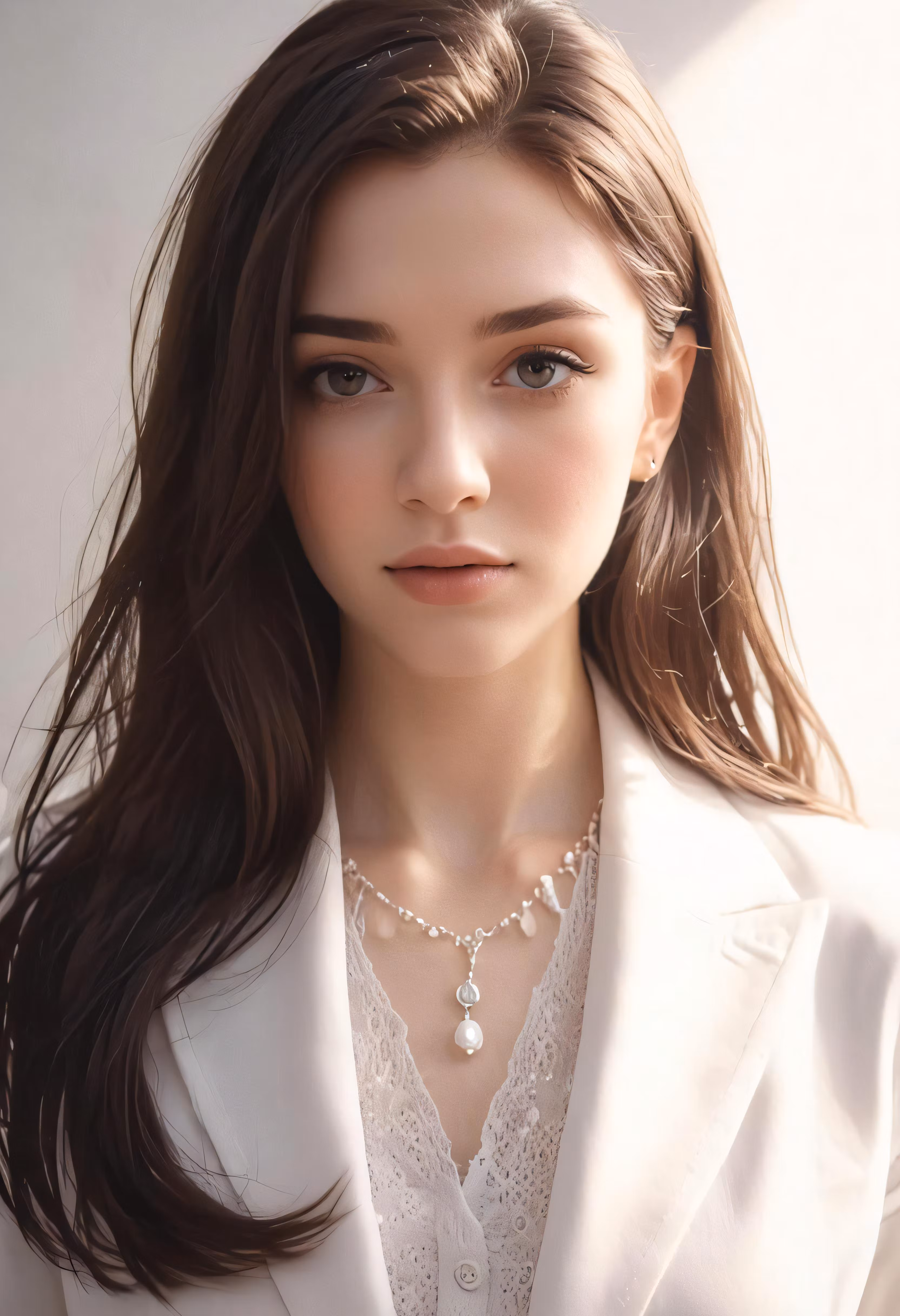 High resolution picture, free to use, a close up view of a woman in a white suit