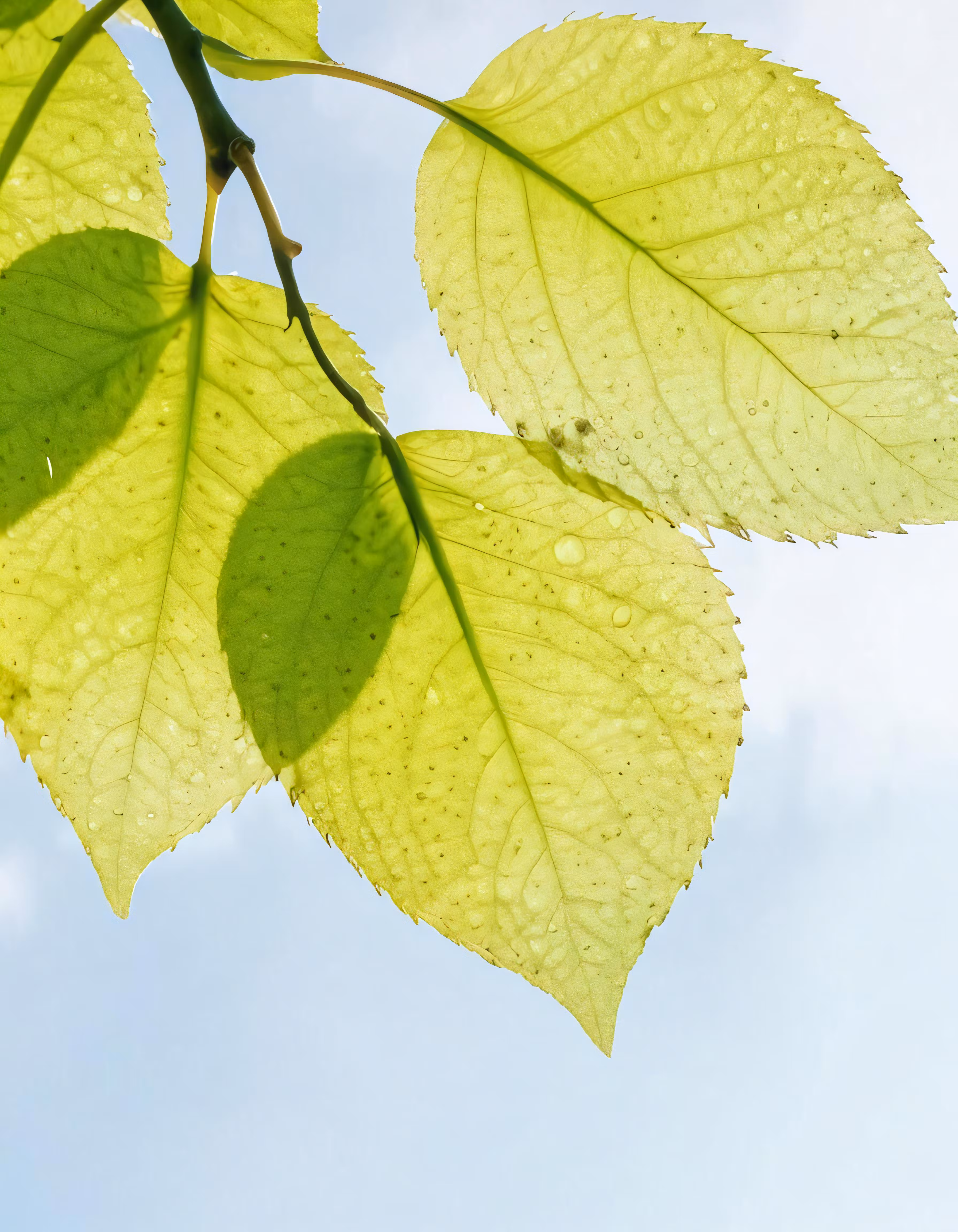 High resolution picture, free to use, a closeup of a bright green leaf with drops