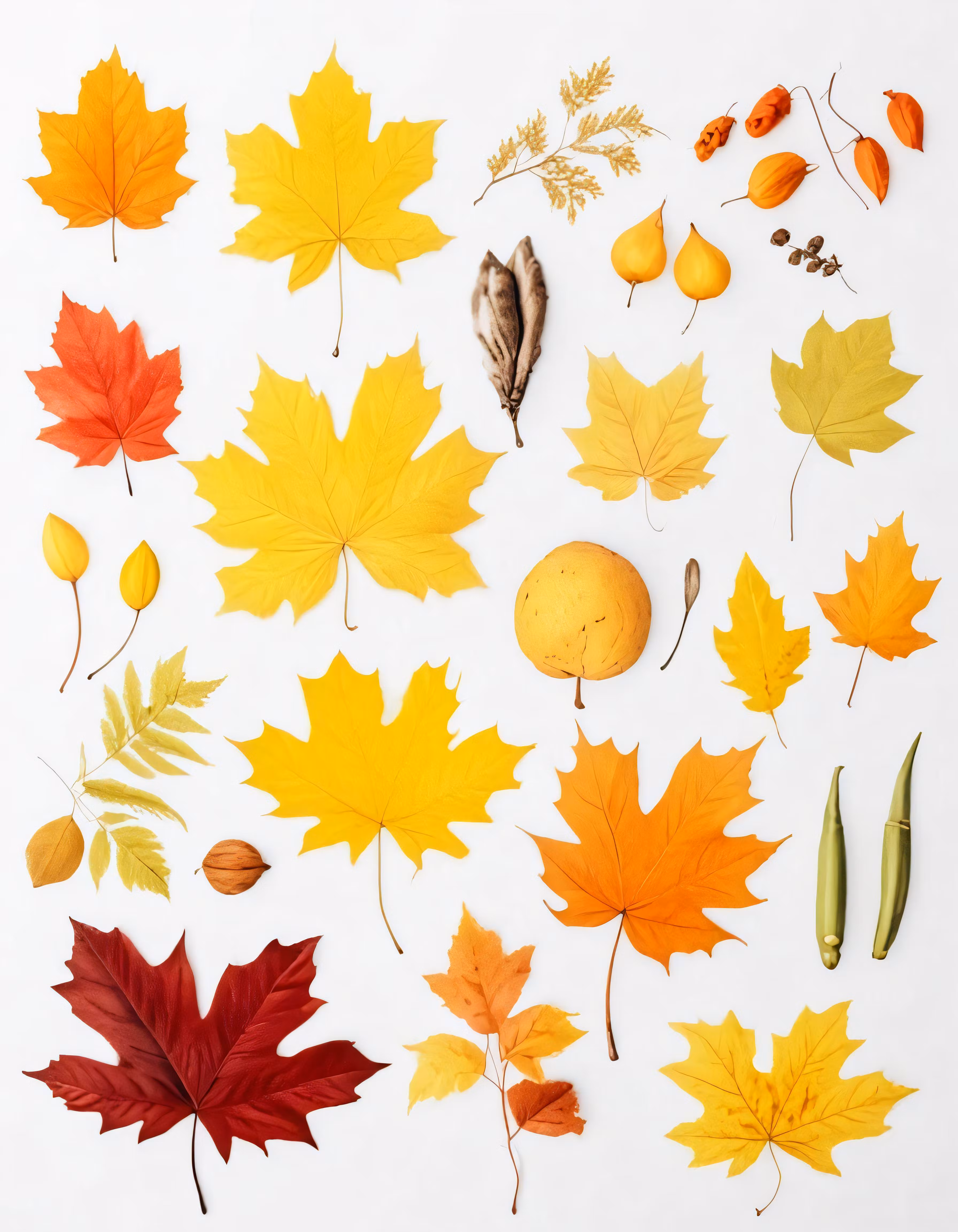 High resolution picture, free to use, a collection of autumn leaves and other small flowers