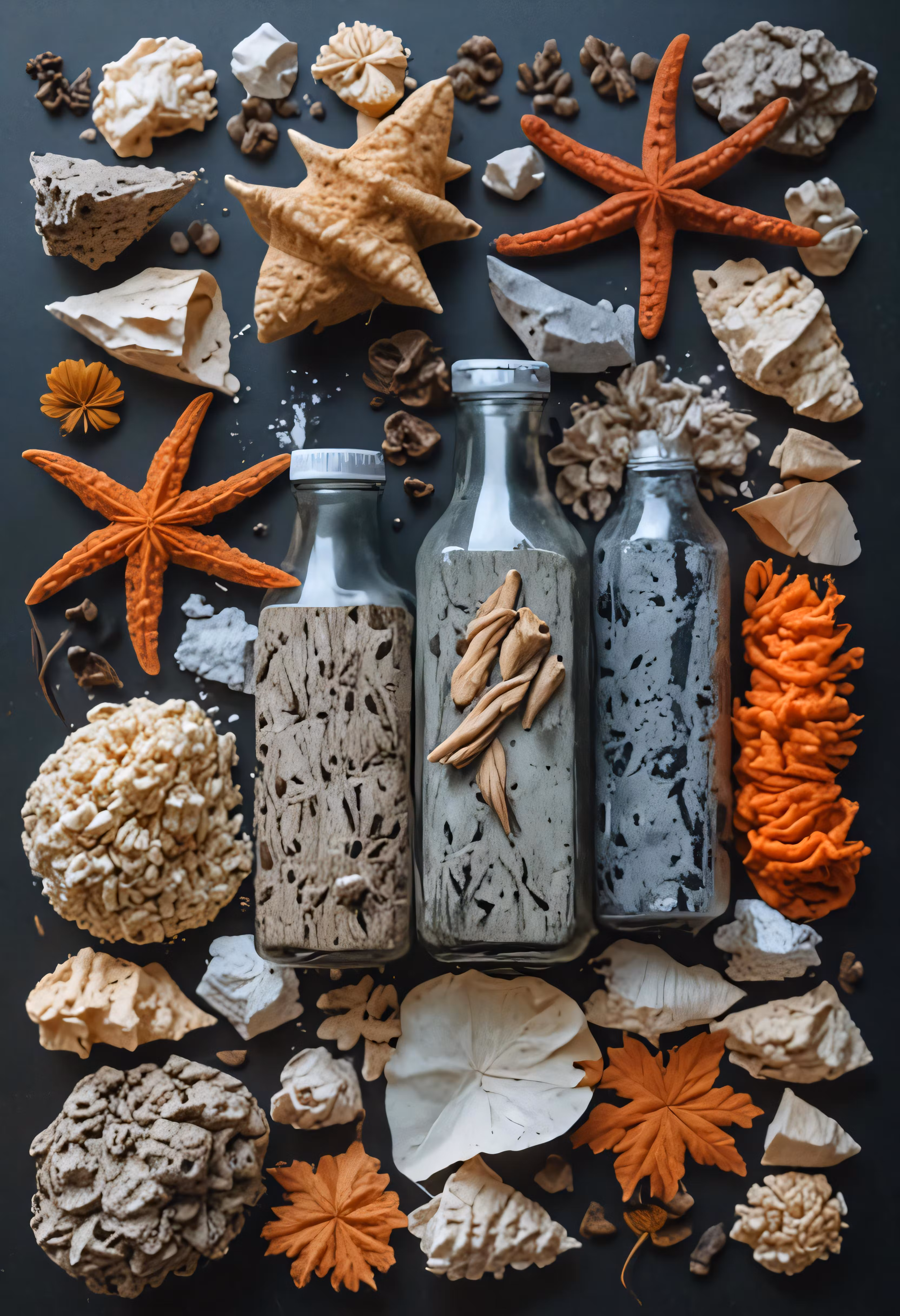 High resolution picture, free to use, a collection of fake things including shells and branches