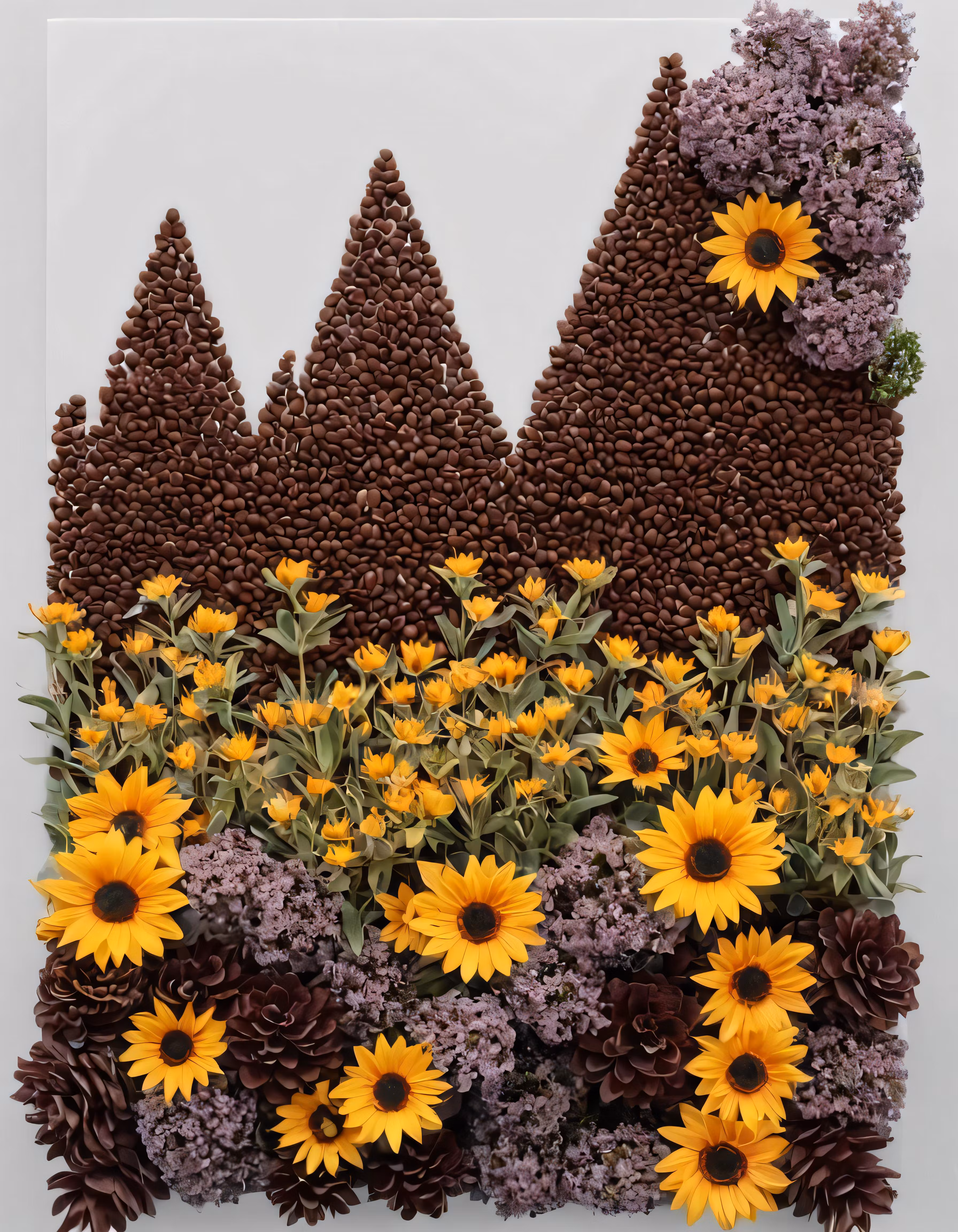 High resolution picture, free to use, a colorful flower arrangement is arranged with large mountain