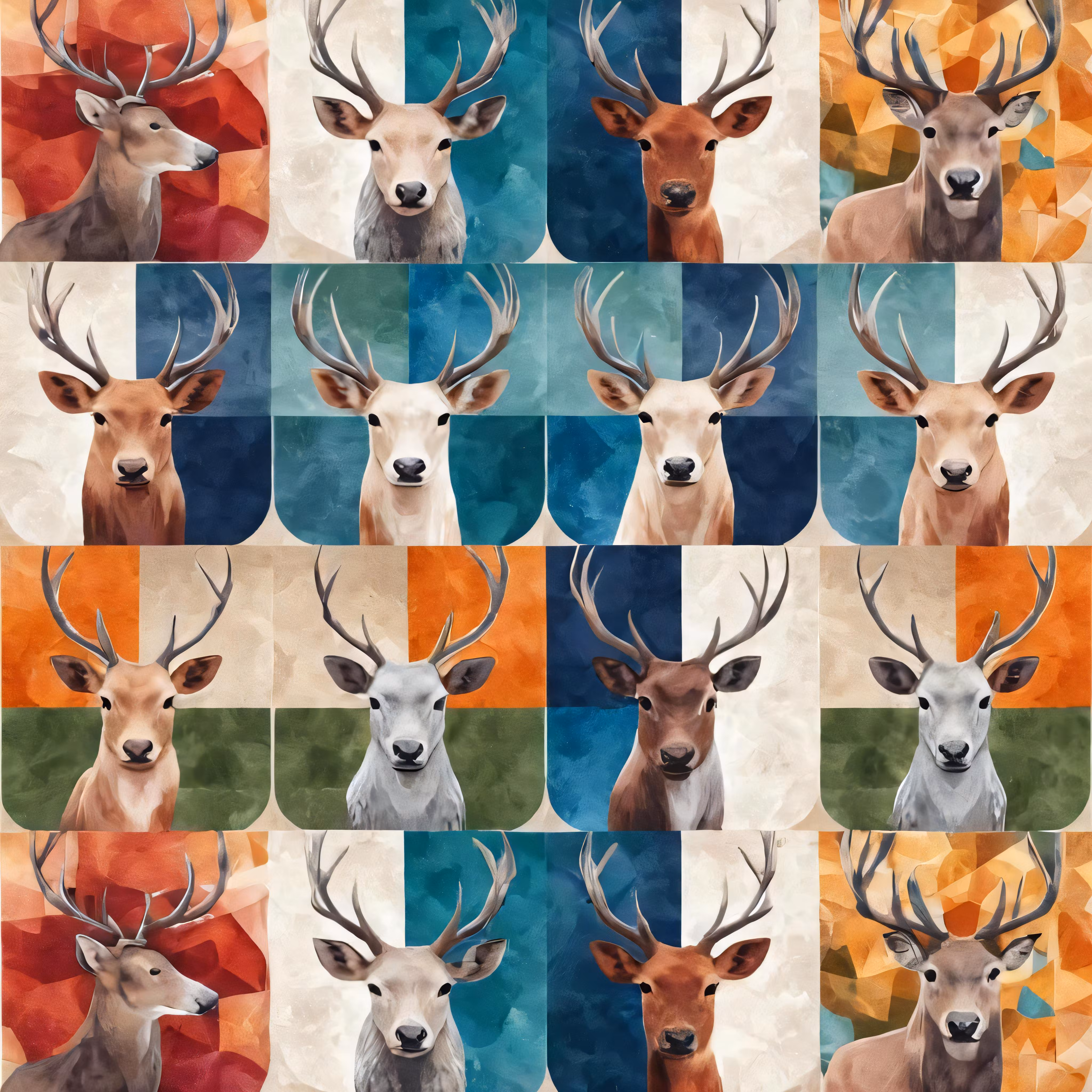 High resolution picture, free to use, a colorful pattern of deer with horns and antlers