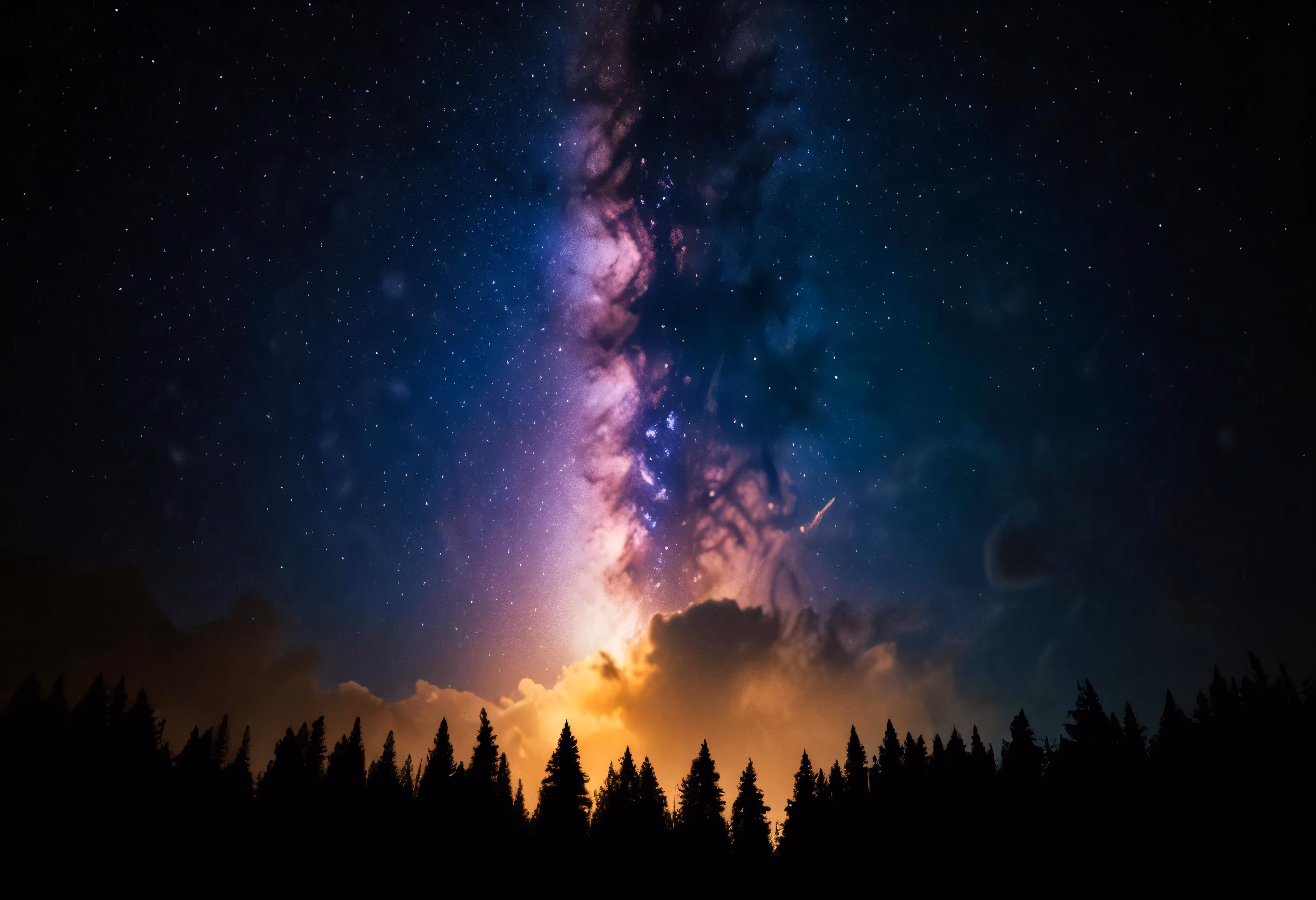 High resolution picture, free to use, a colorful sky is shown over the trees