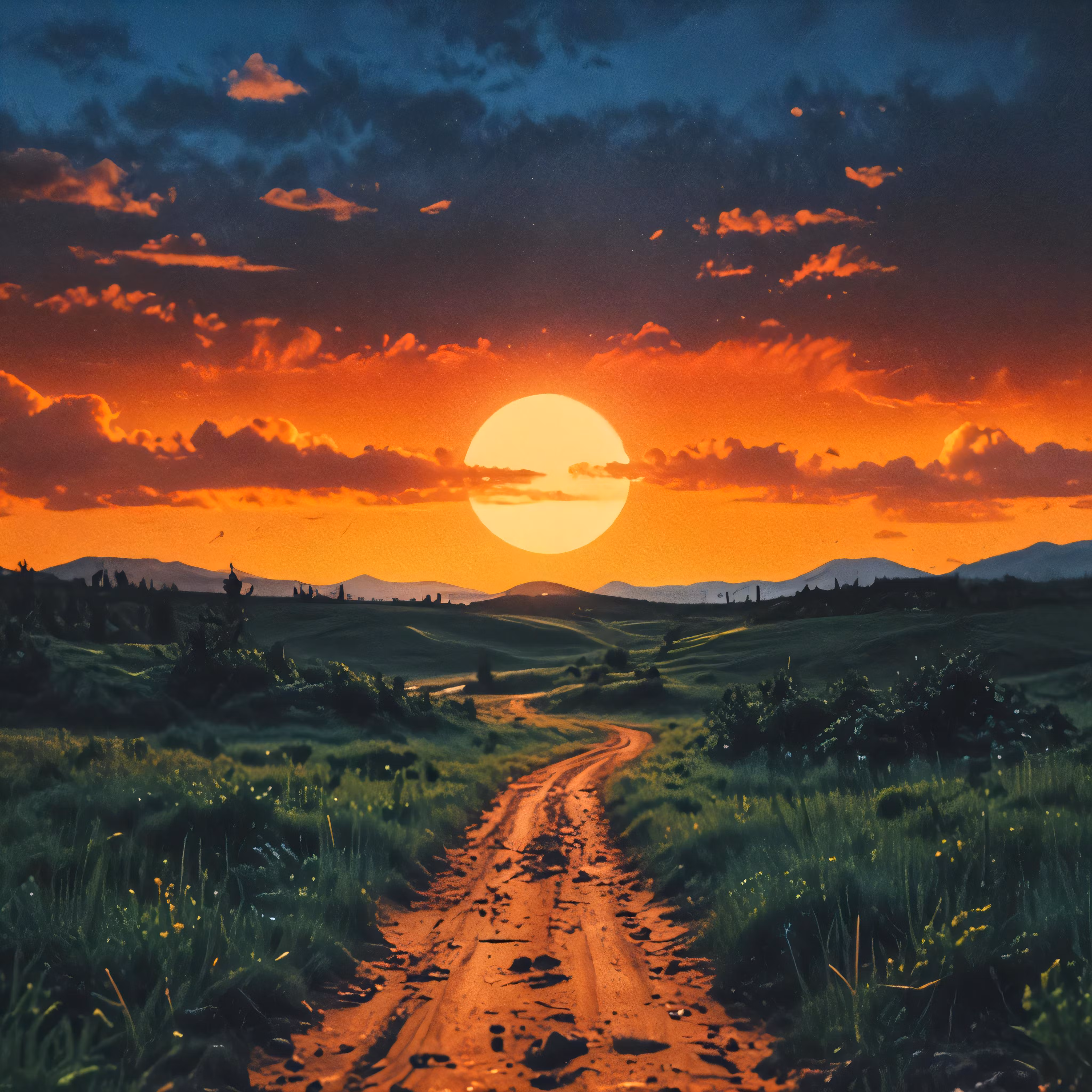 High resolution picture, free to use, a colorful sunset in the countryside with some clouds