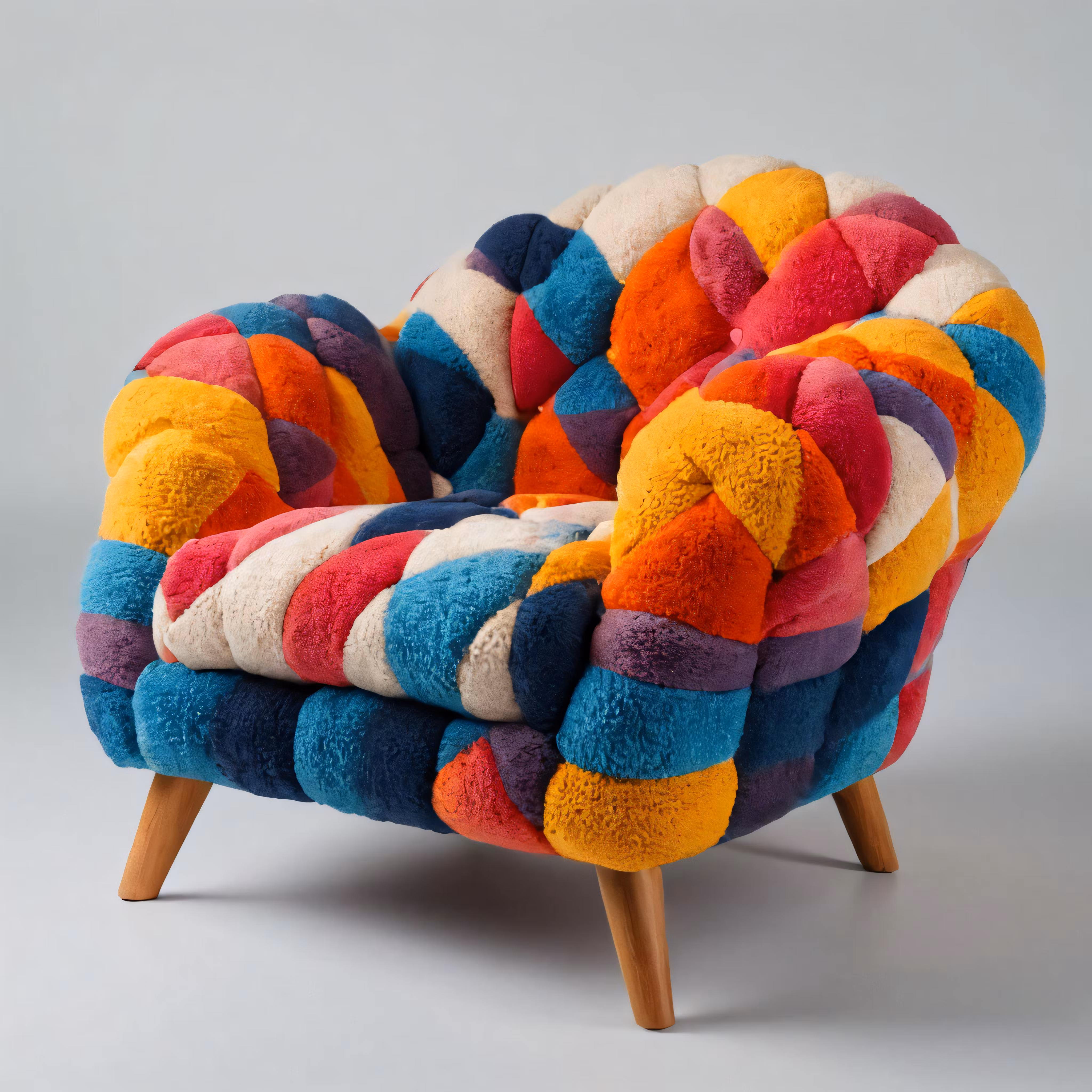 High resolution picture, free to use, a colorfully colored chair with wooden legs and feet
