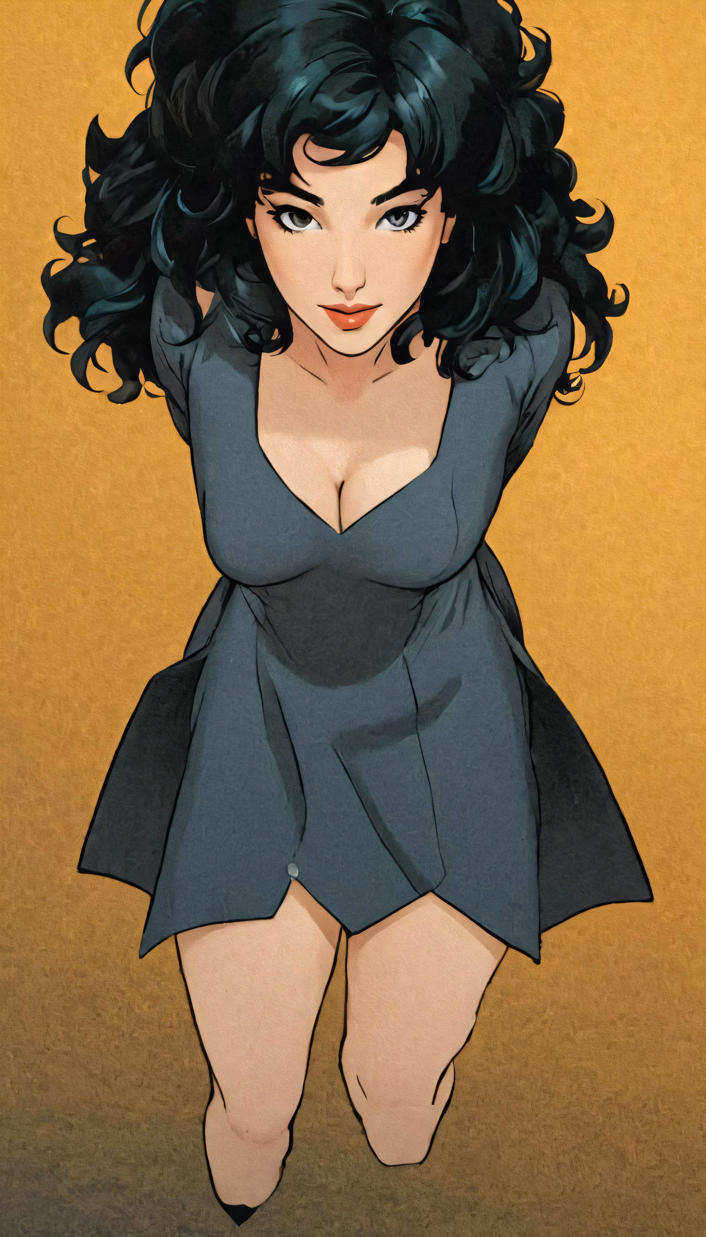 High resolution picture, free to use, a comic girl sitting down with very large breast