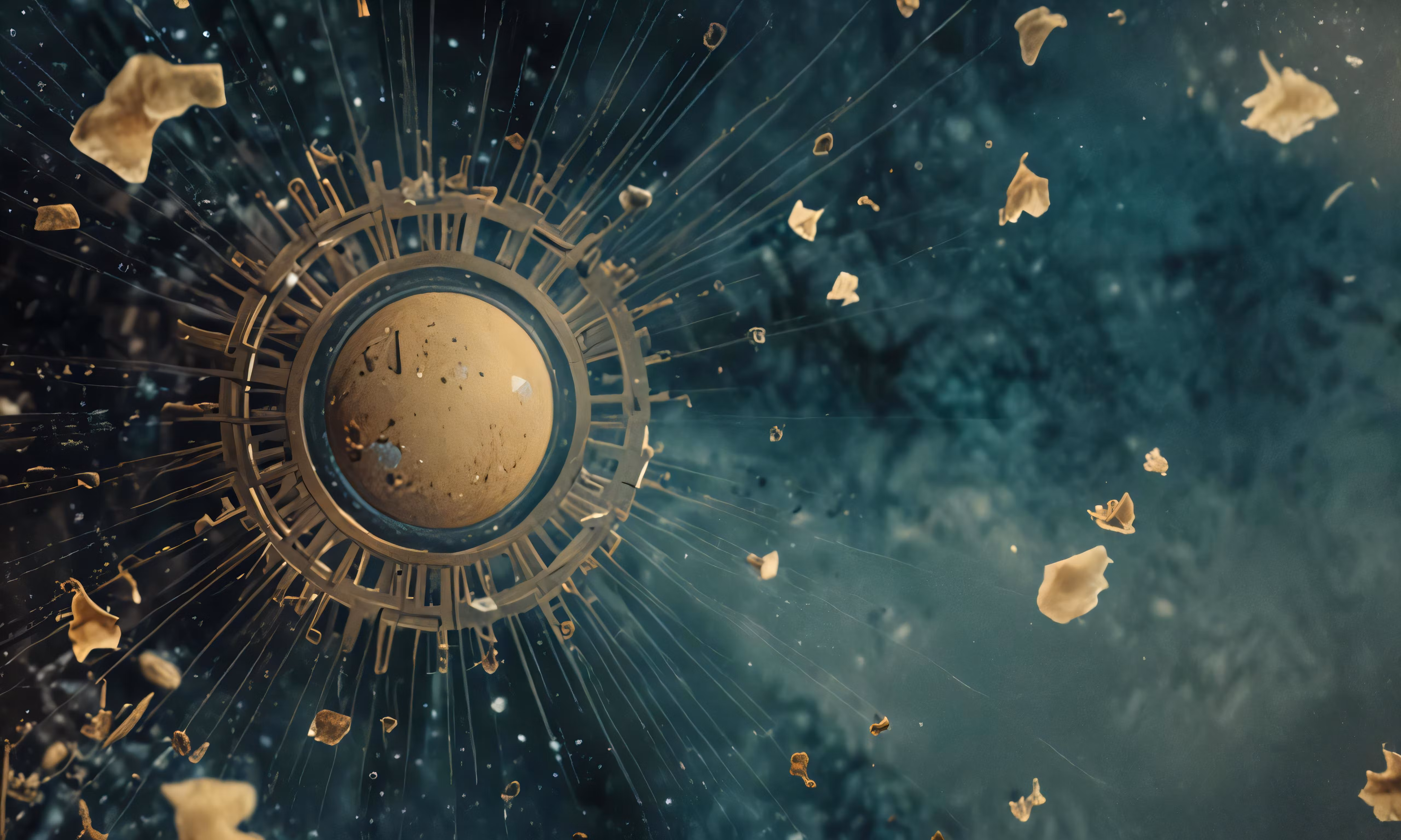High resolution picture, free to use, a computer screen shot flying through space filled with objects