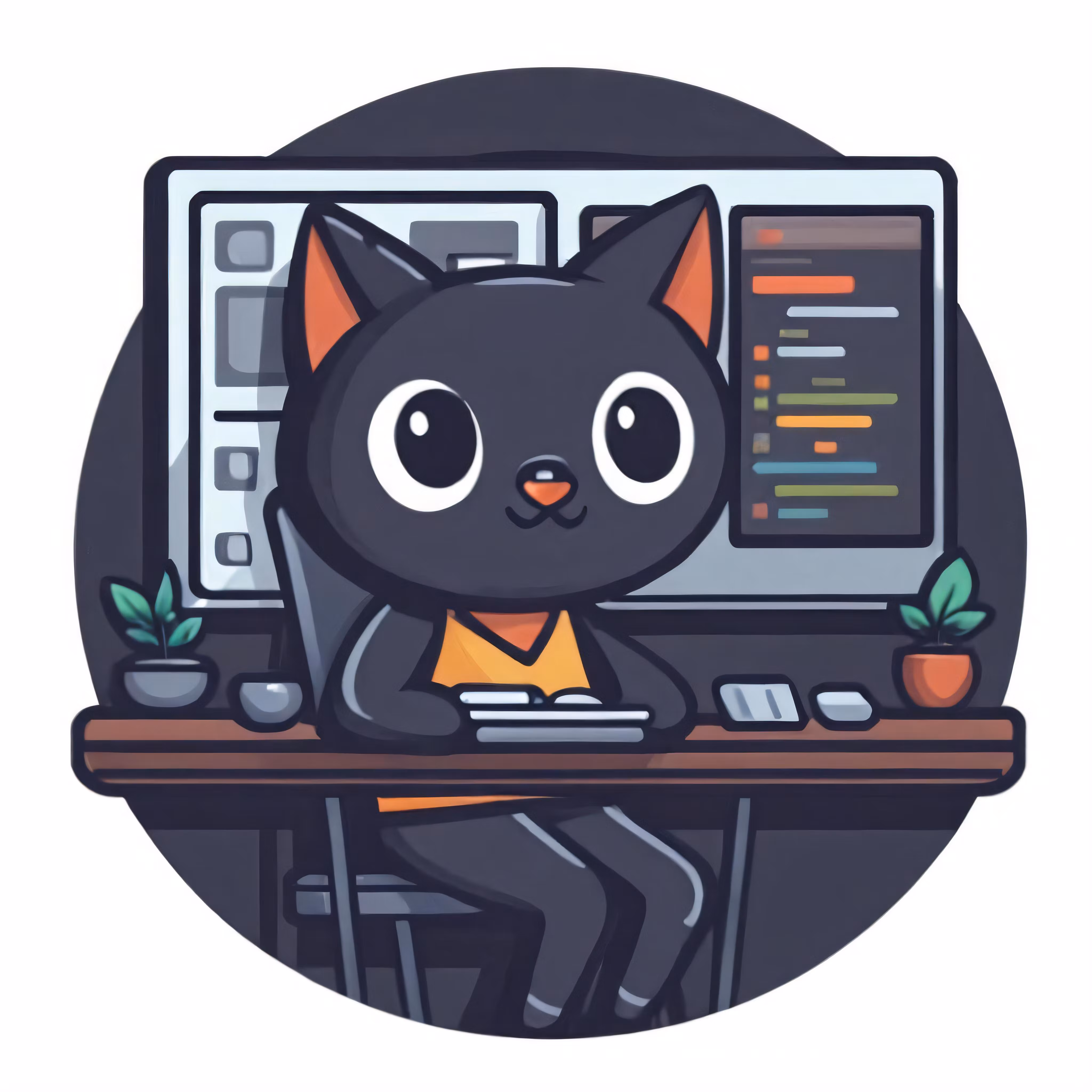 High resolution picture, free to use, a computer that looks like a cat sitting at it desk