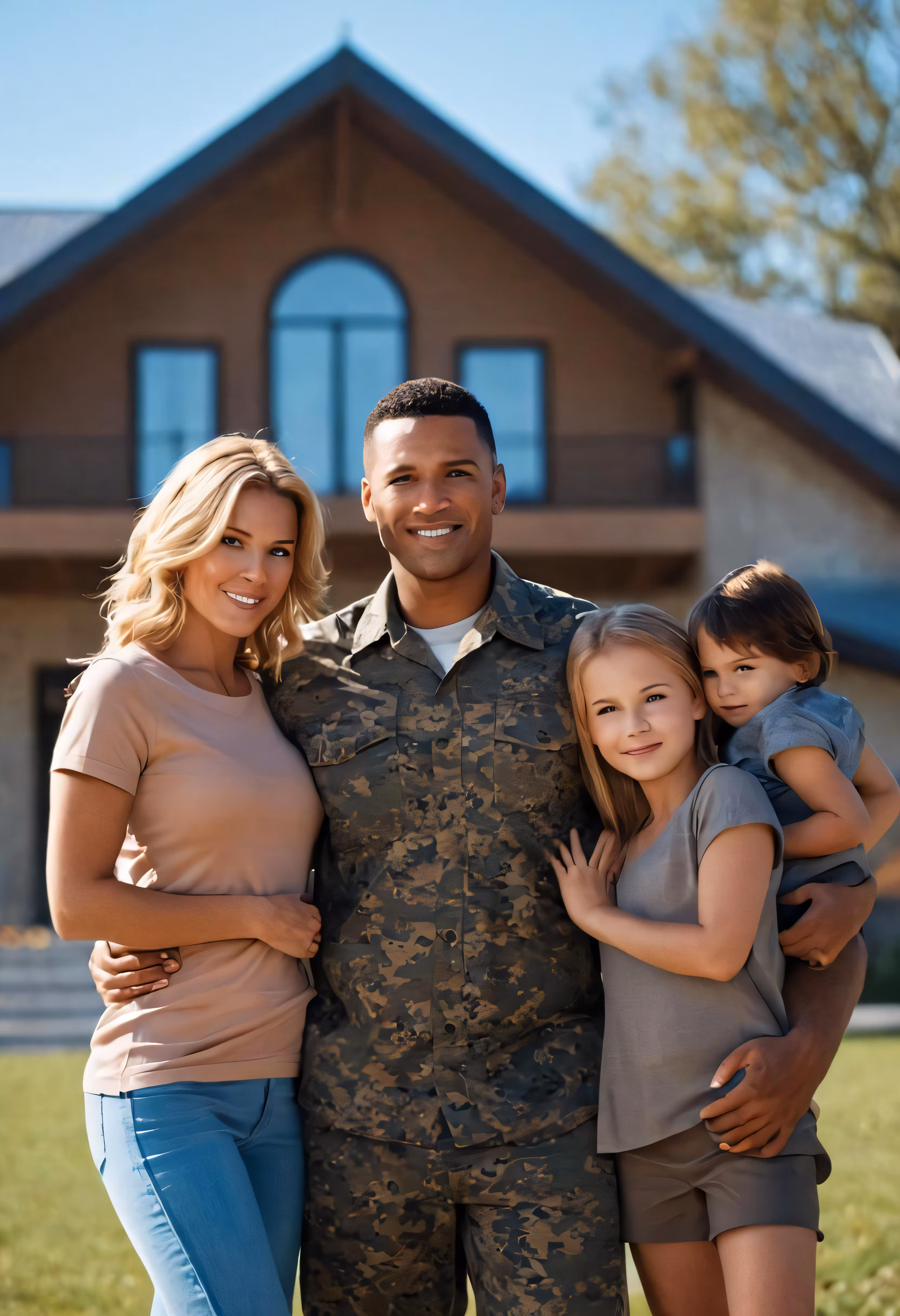 High resolution picture, free to use, a couple and two children standing outside of a home