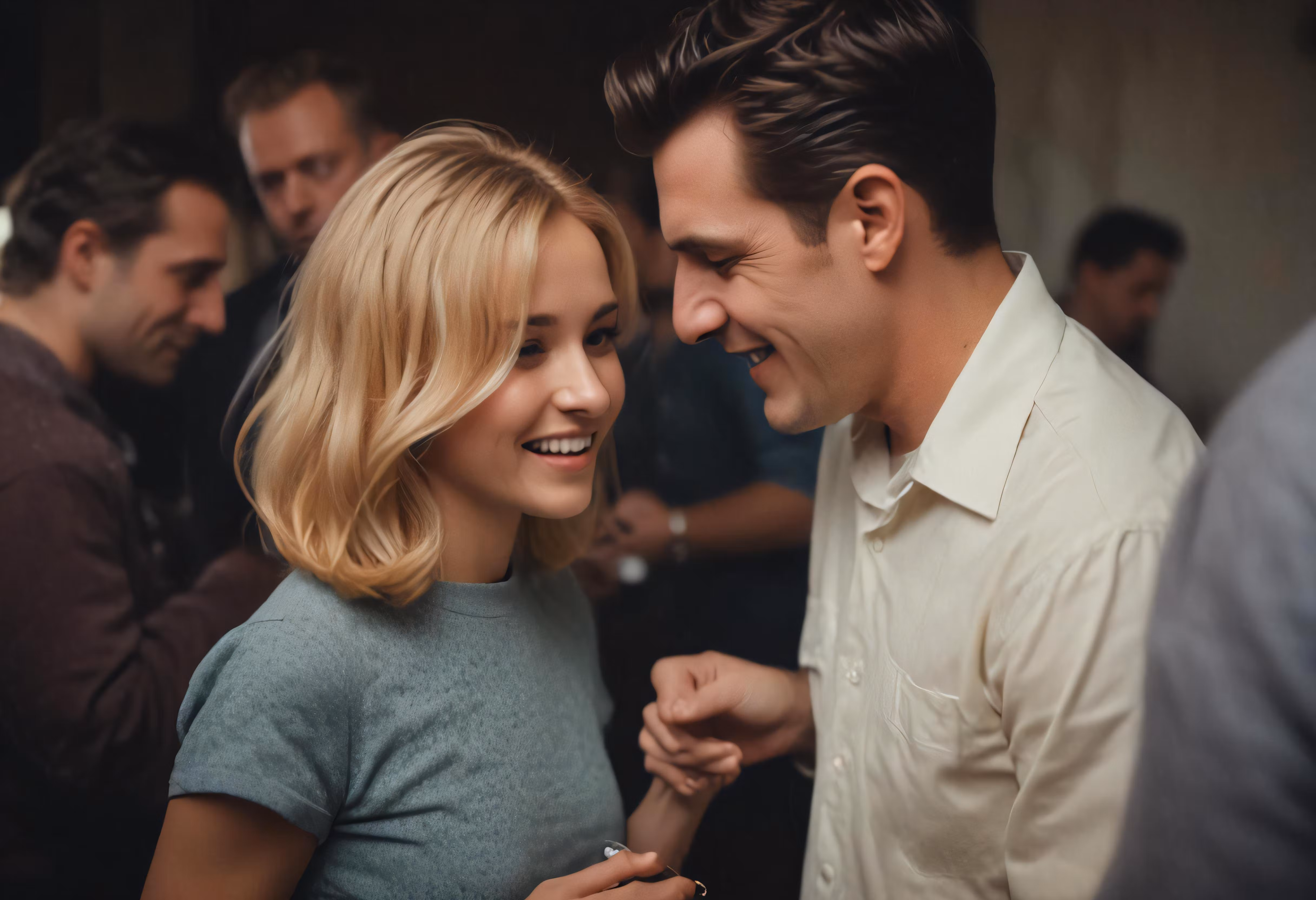 High resolution picture, free to use, a couple laughing while standing next to each other