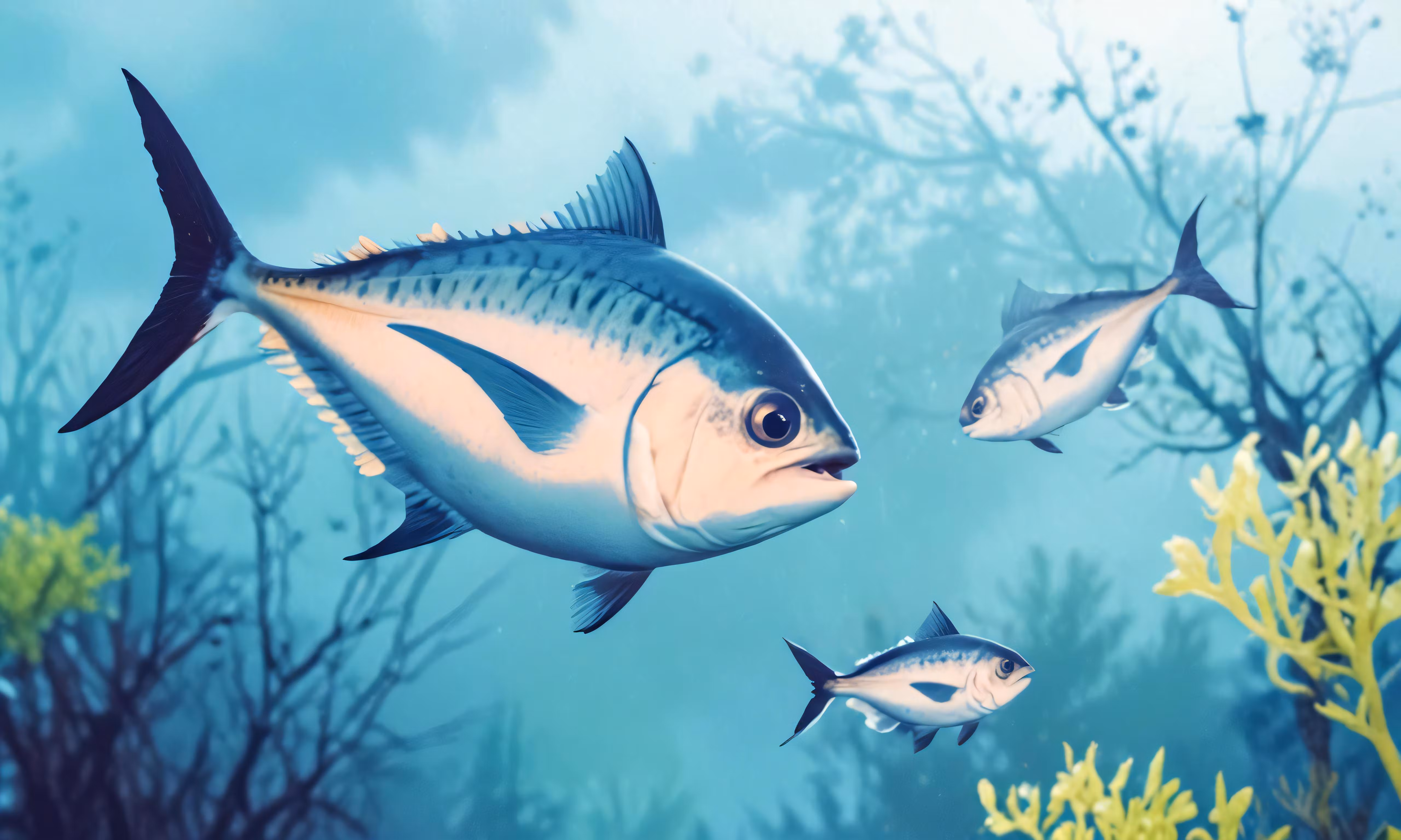 High resolution picture, free to use, a couple of black and white fish swimming in the ocean