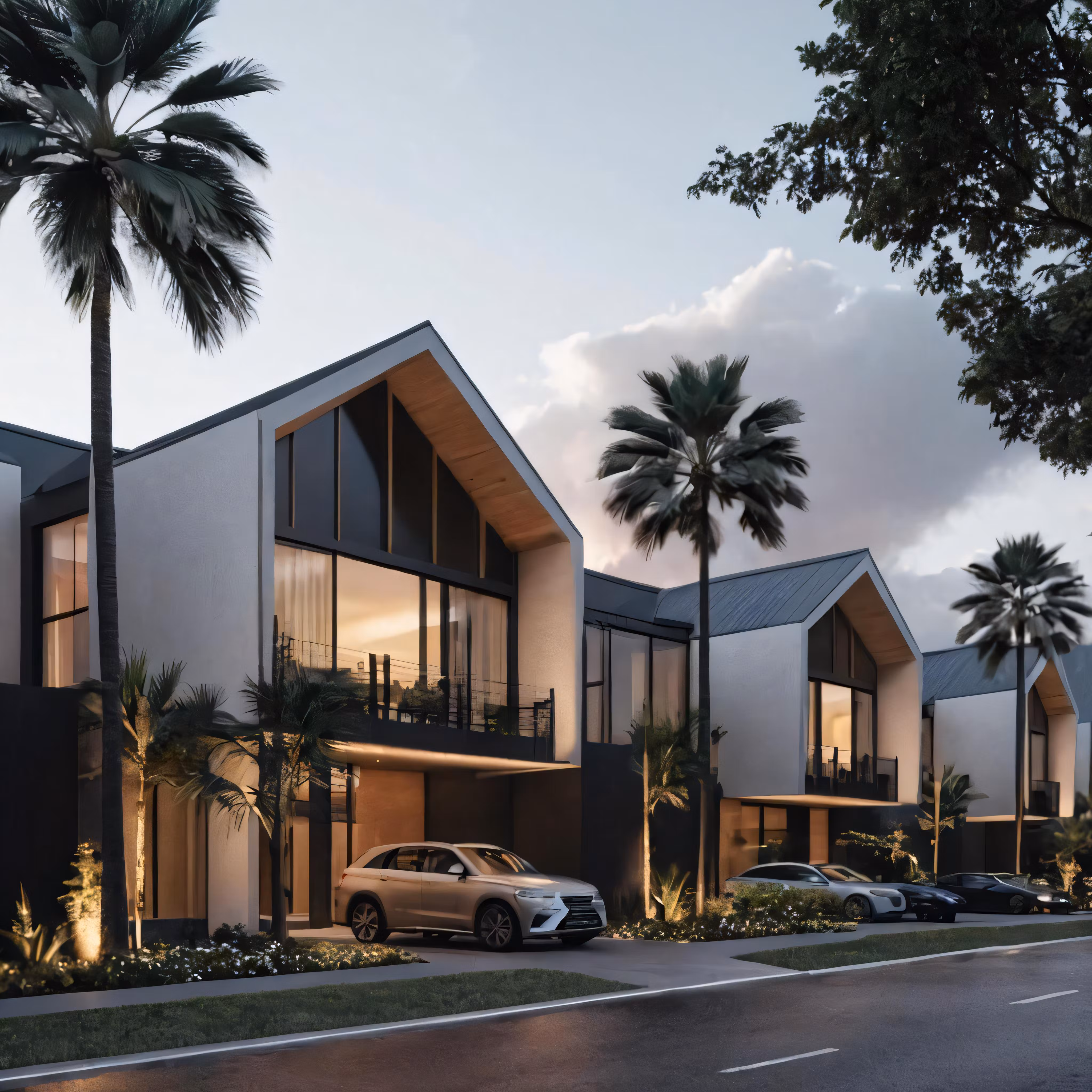 High resolution picture, free to use, a couple of cars parked in front of some large buildings