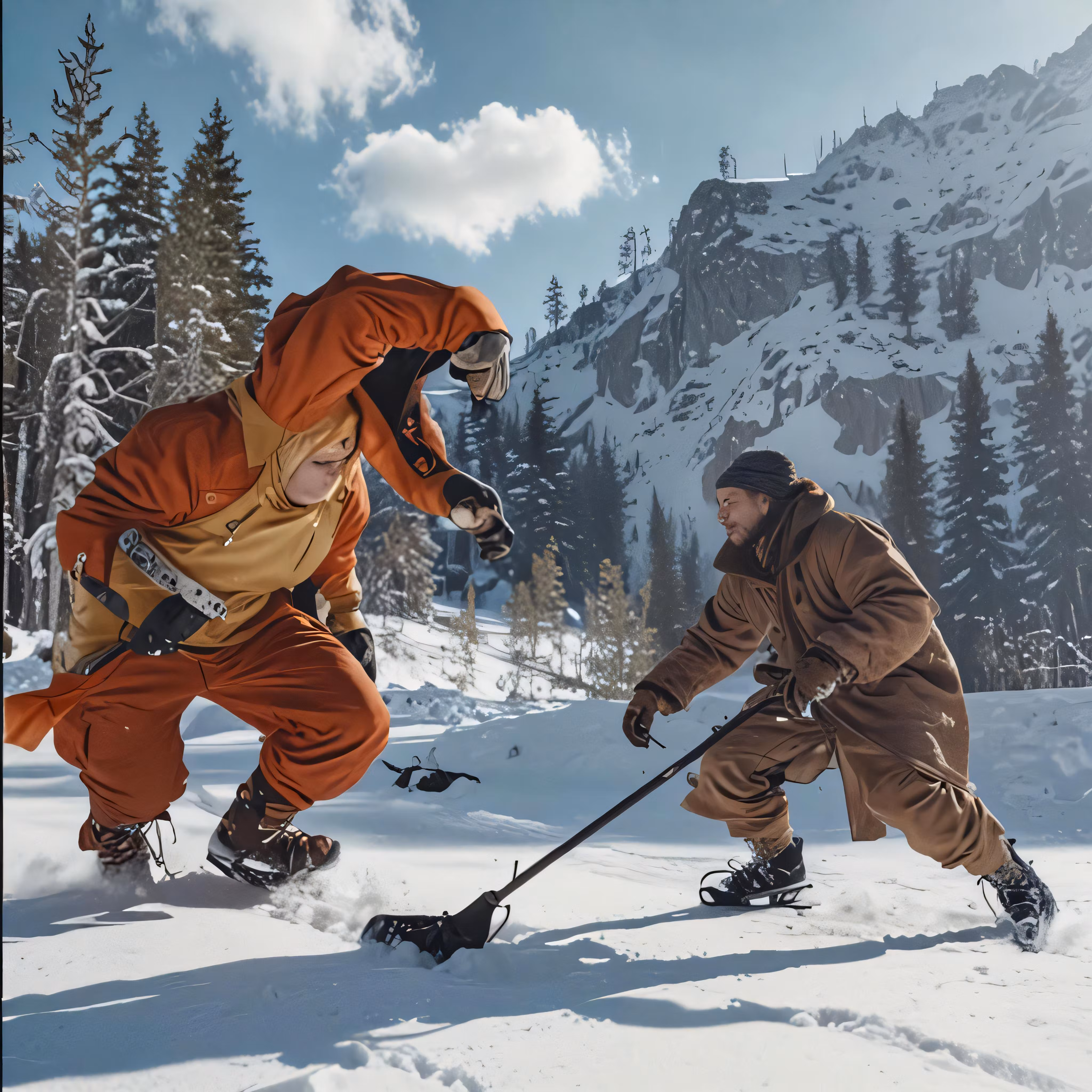 High resolution picture, free to use, a couple of people in ski gear playing in the snow