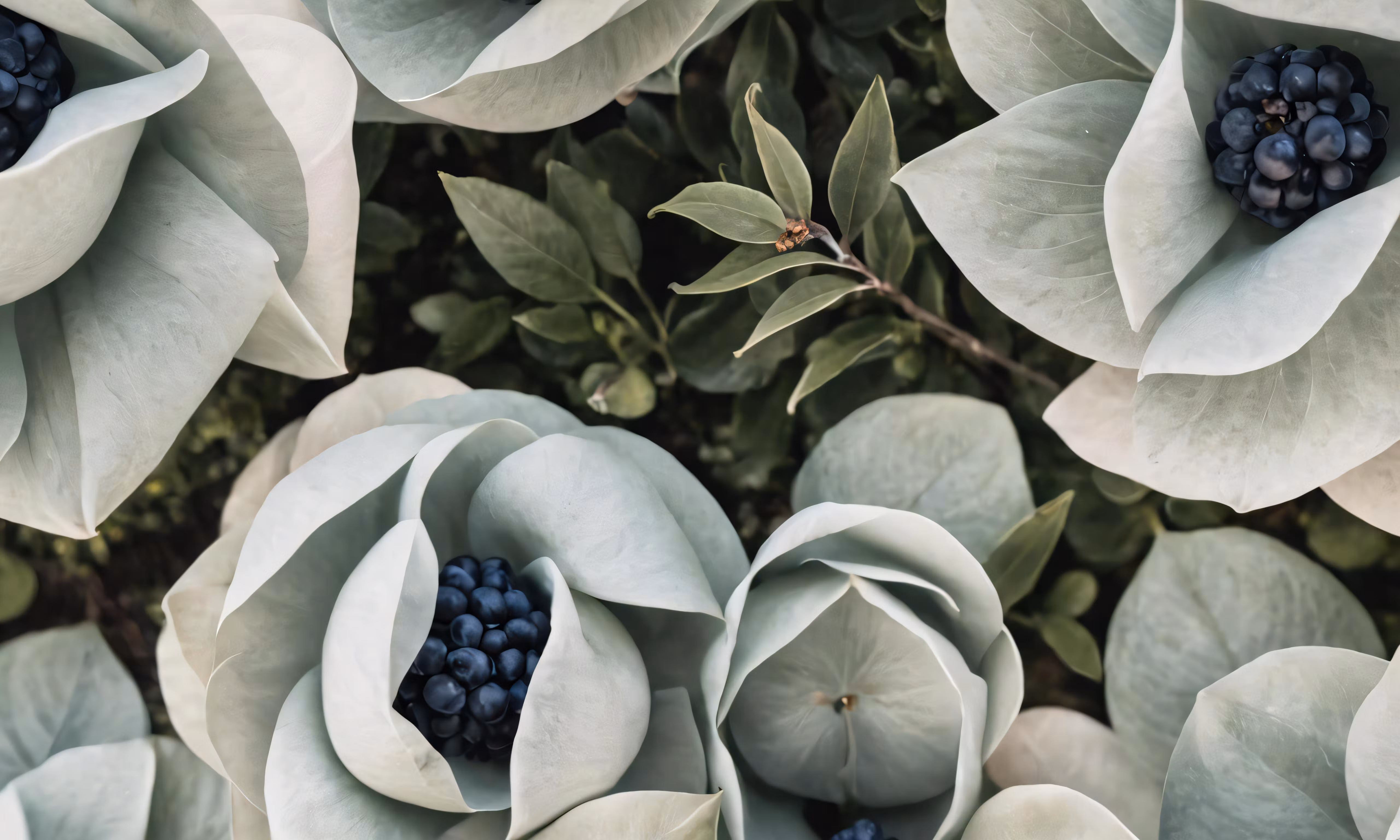 High resolution picture, free to use, a couple of plants with some blue berries on them