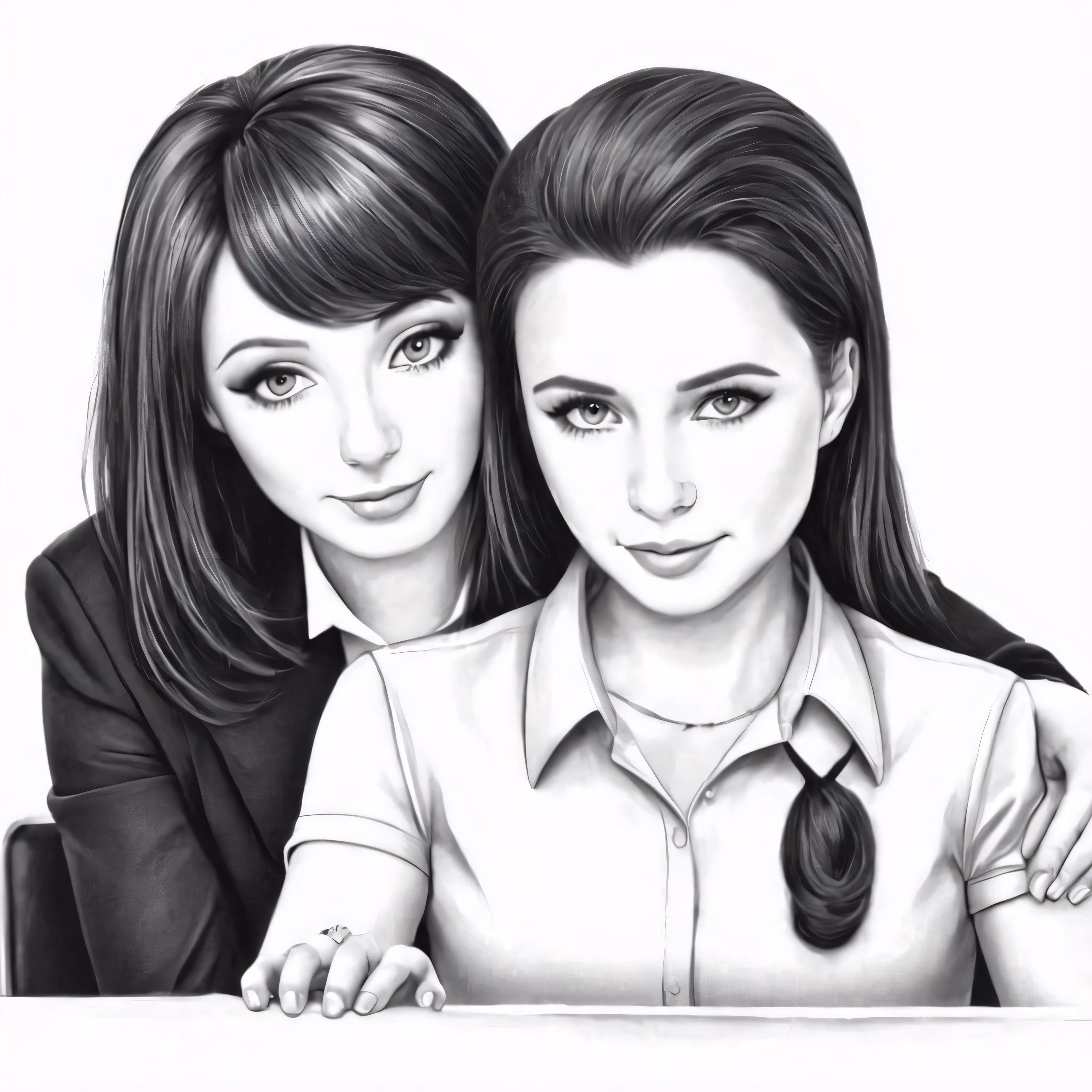 High resolution picture, free to use, a couple of women that are in front of a wall