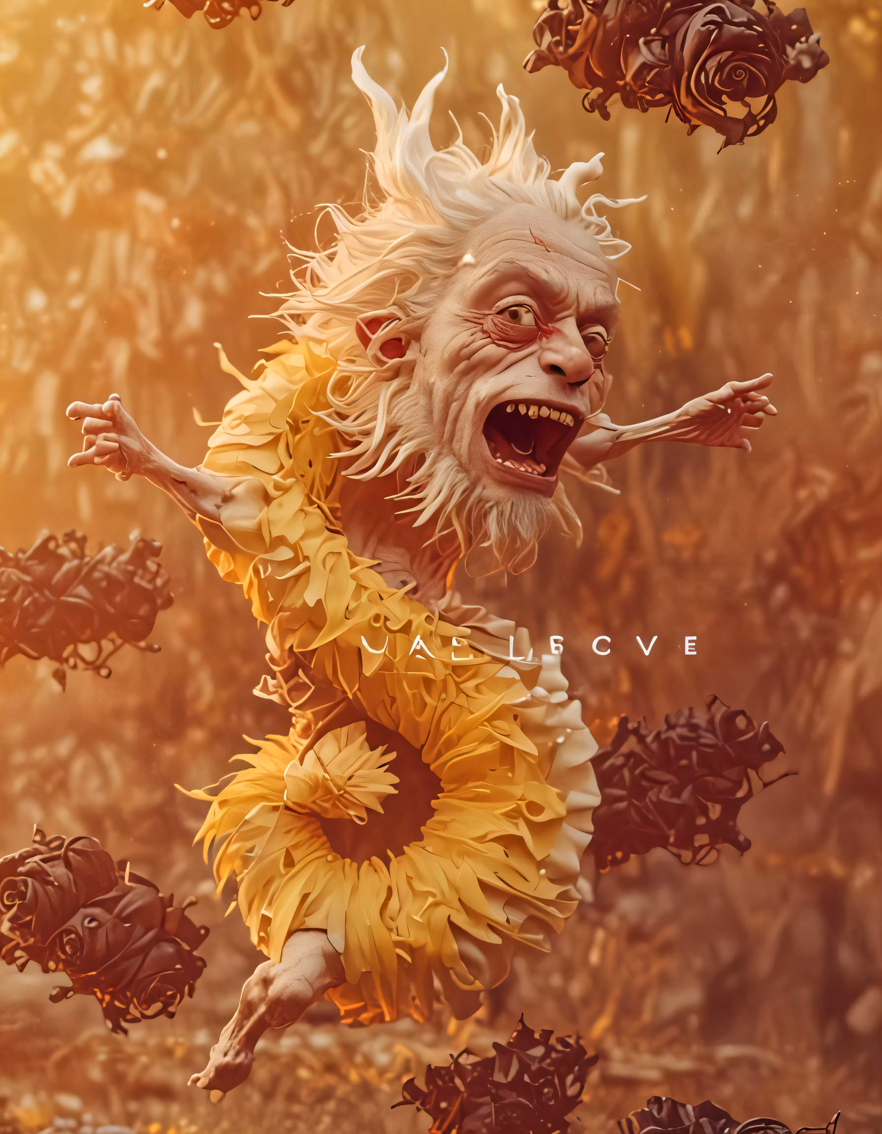 High resolution picture, free to use, a creepy looking man in yellow is standing outside