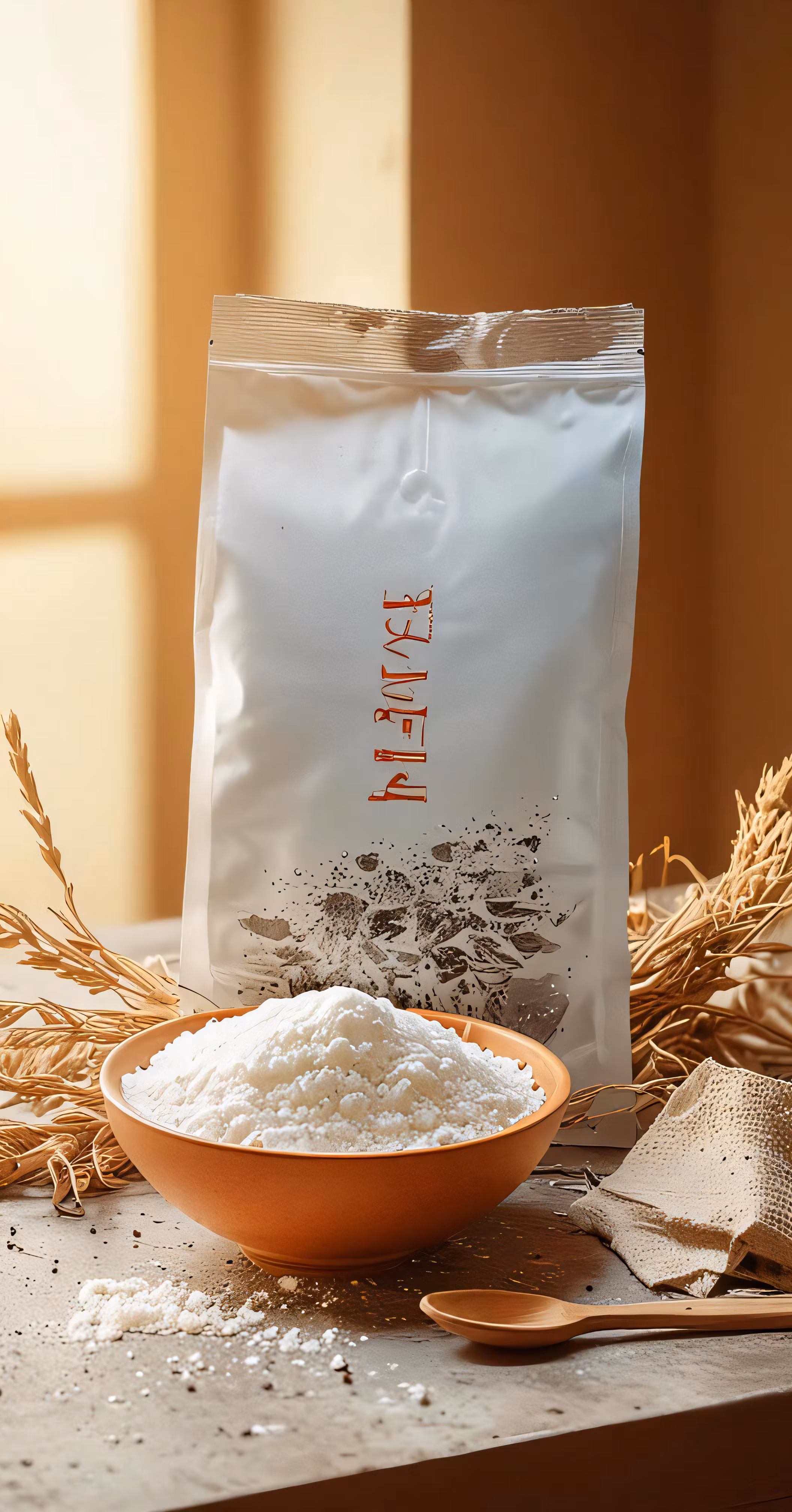High resolution picture, free to use, a cup of tea next to a white rice mix