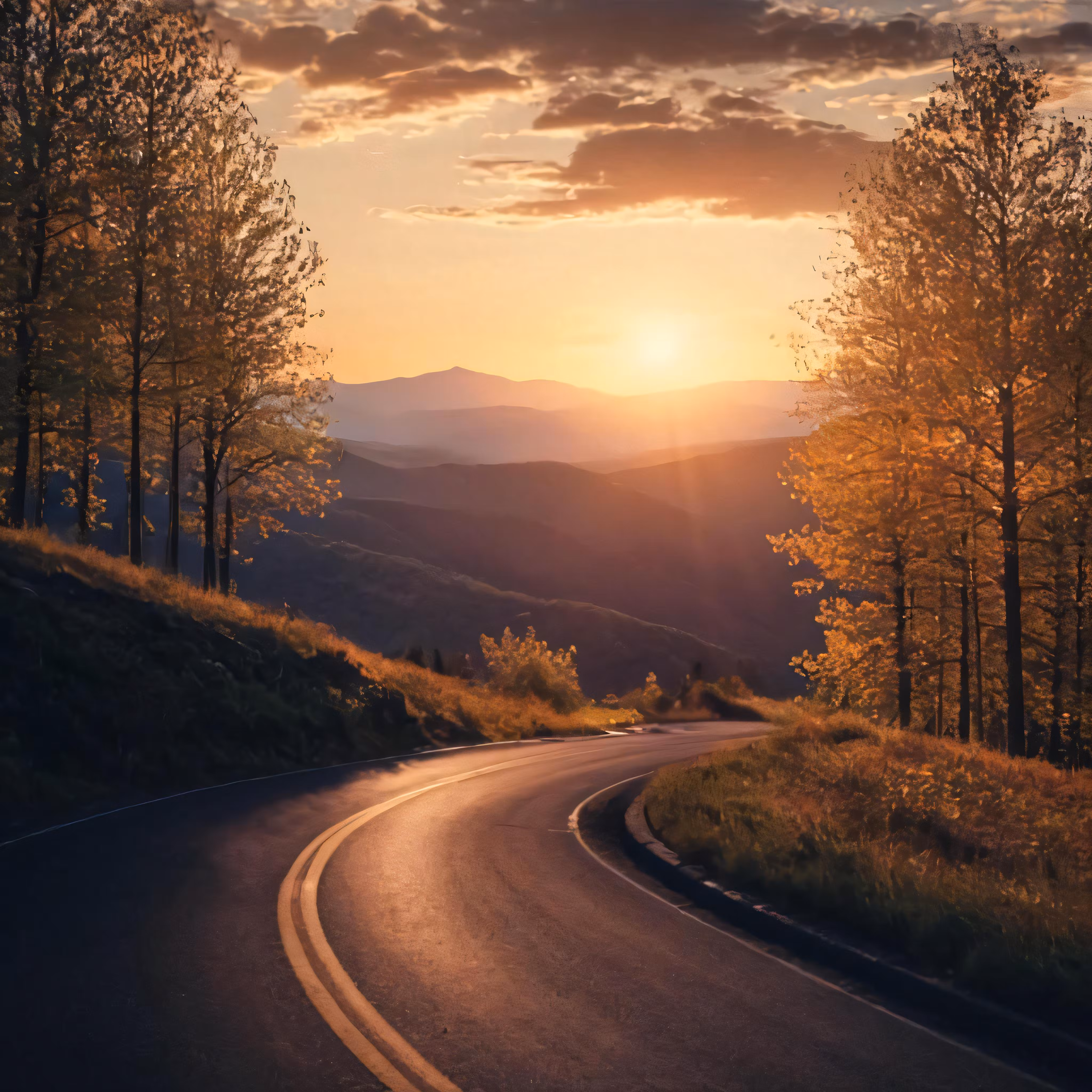 High resolution picture, free to use, a curvy curved road with trees on the side