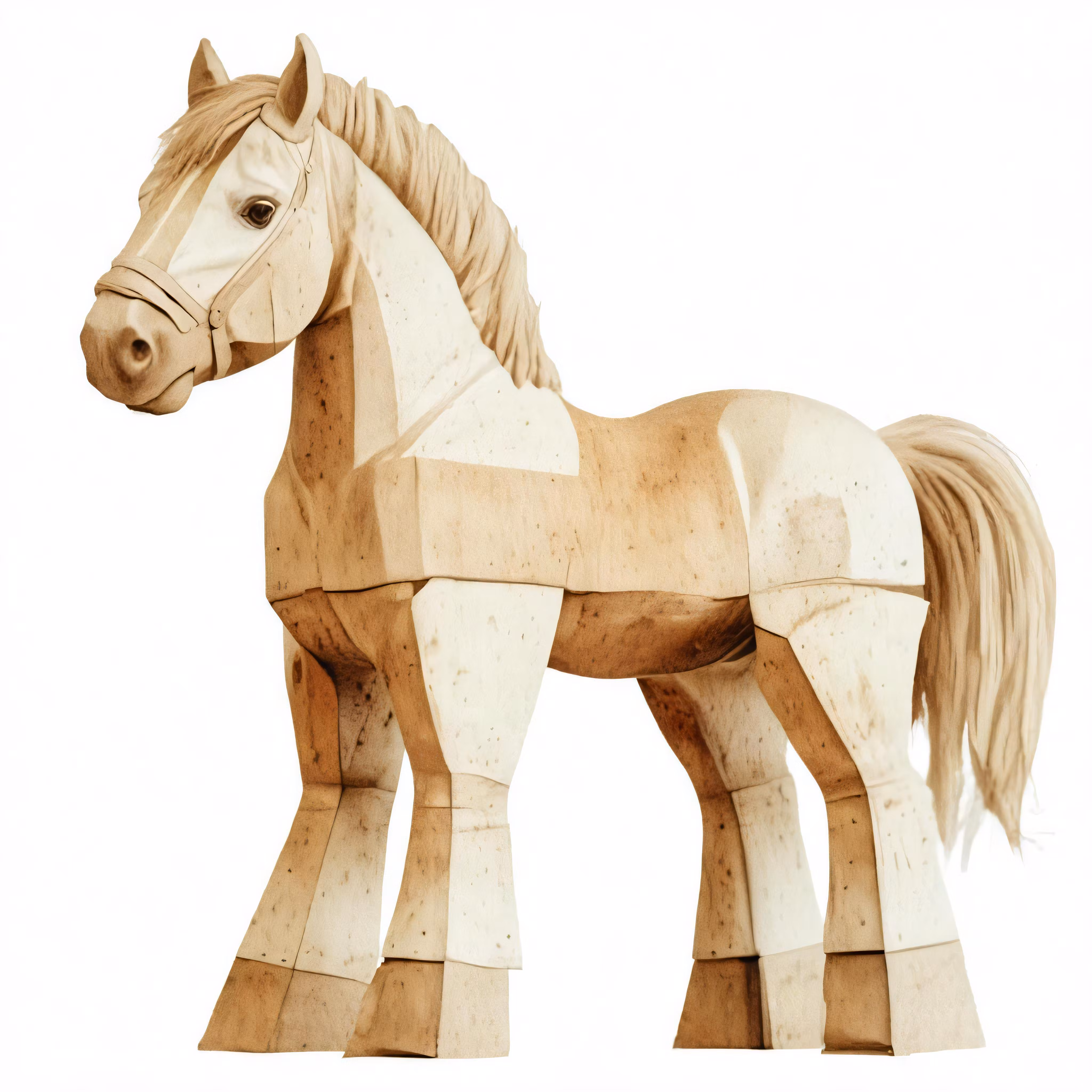 High resolution picture, free to use, a cut out of a wooden horse with horns