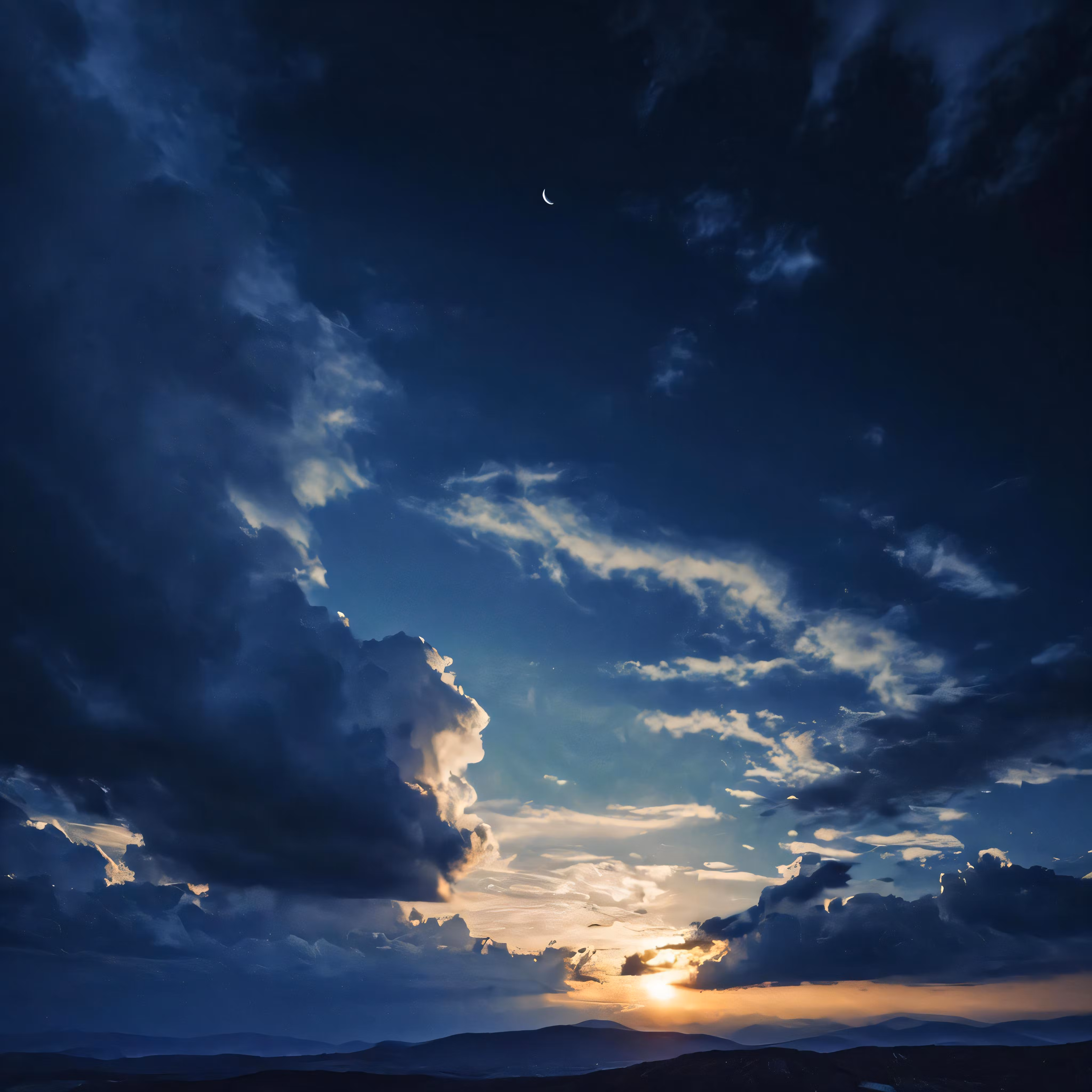 High resolution picture, free to use, a dark sky with clouds and bright sun behind it