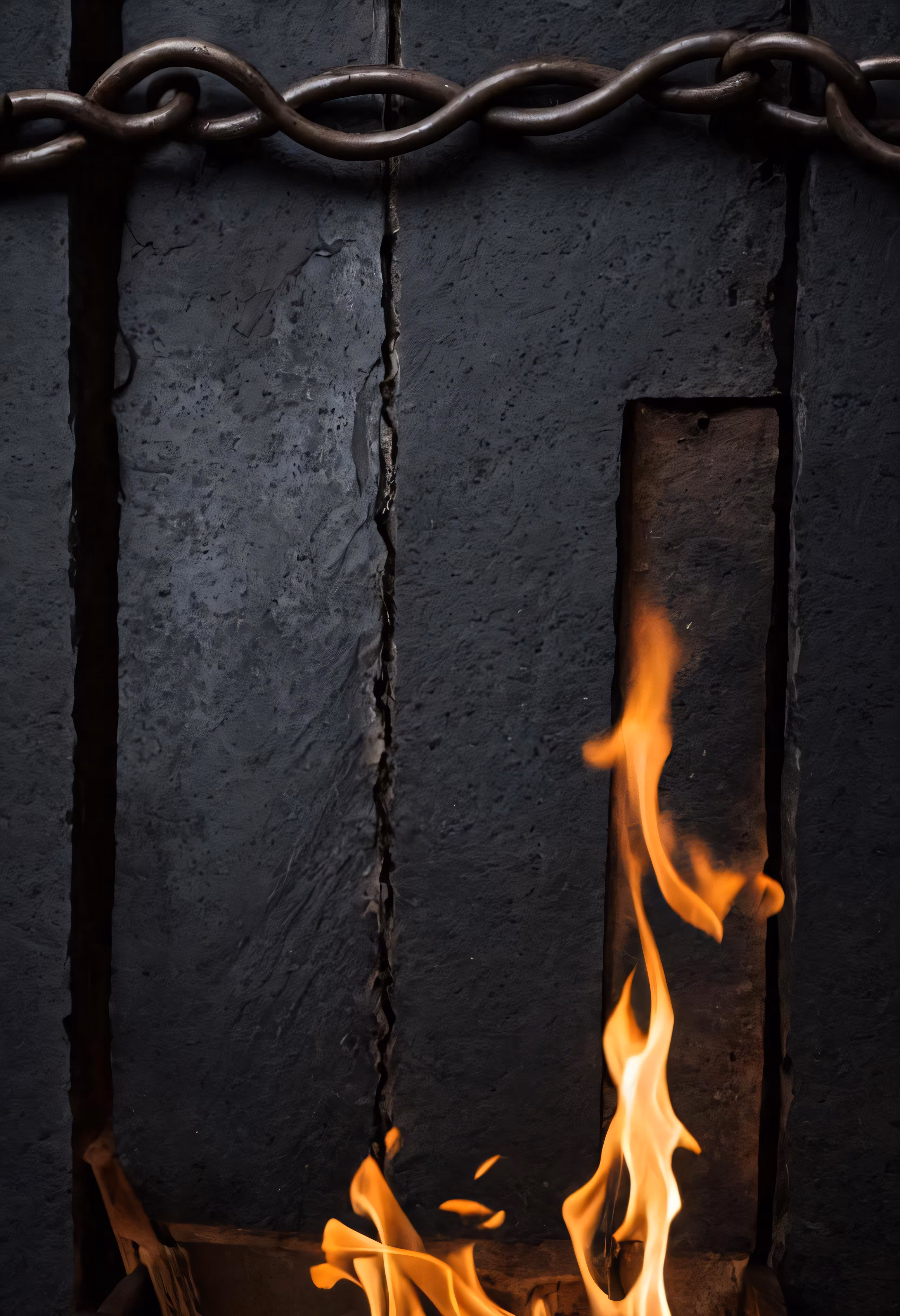 High resolution picture, free to use, a dark wall is fenced with some fire