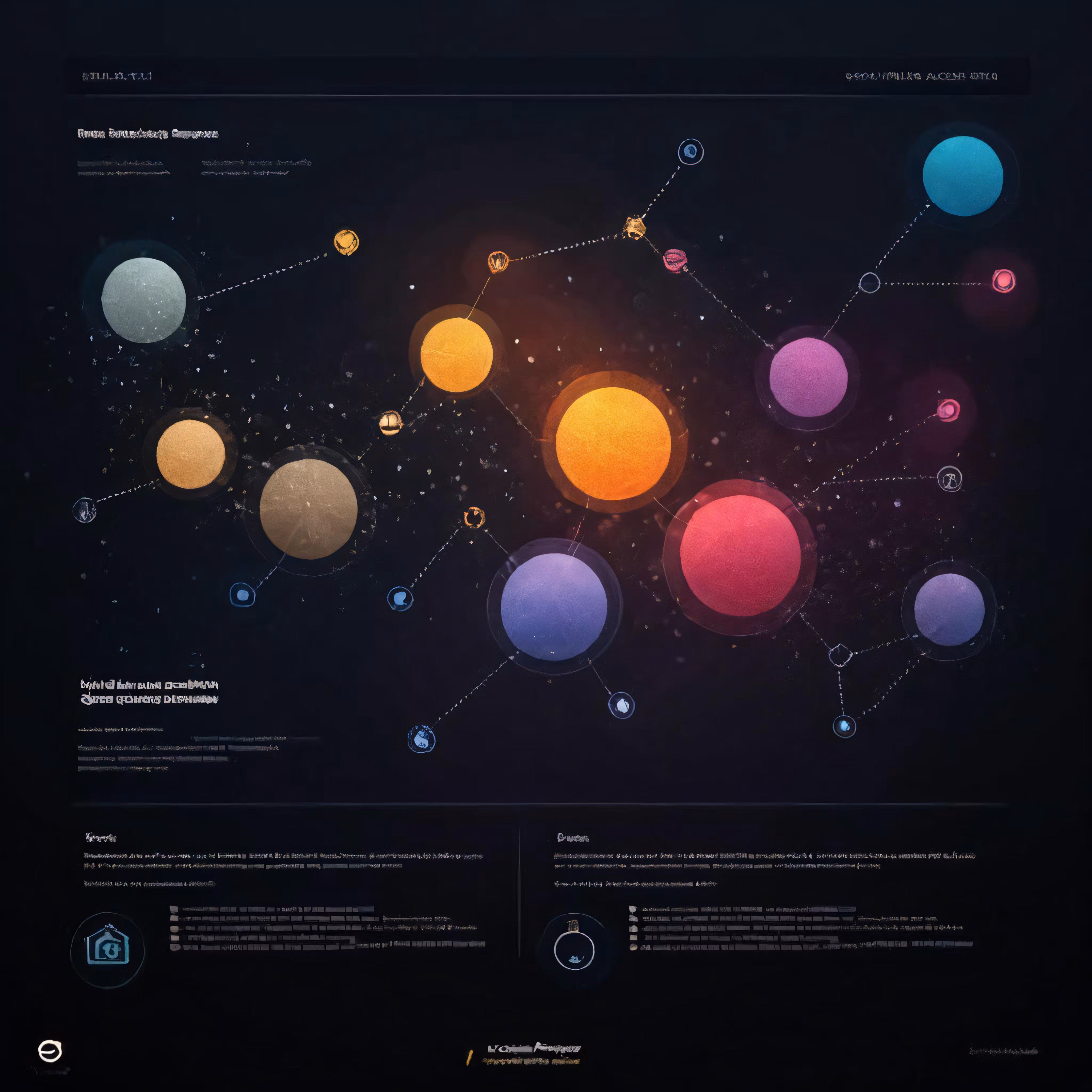 High resolution picture, free to use, a dark web page with several different colorful circles on it