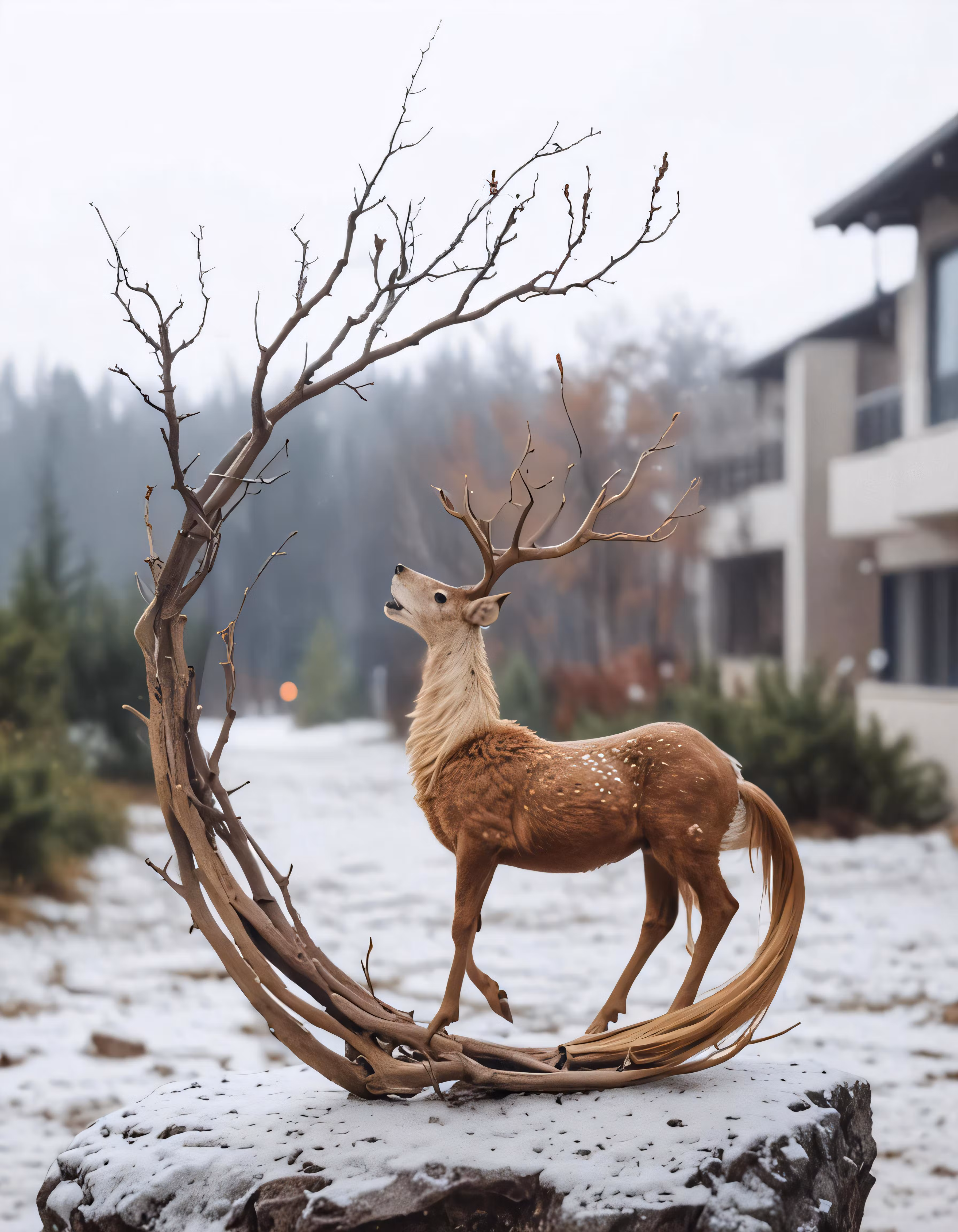 High resolution picture, free to use, a deer standing inside a circle made of branches