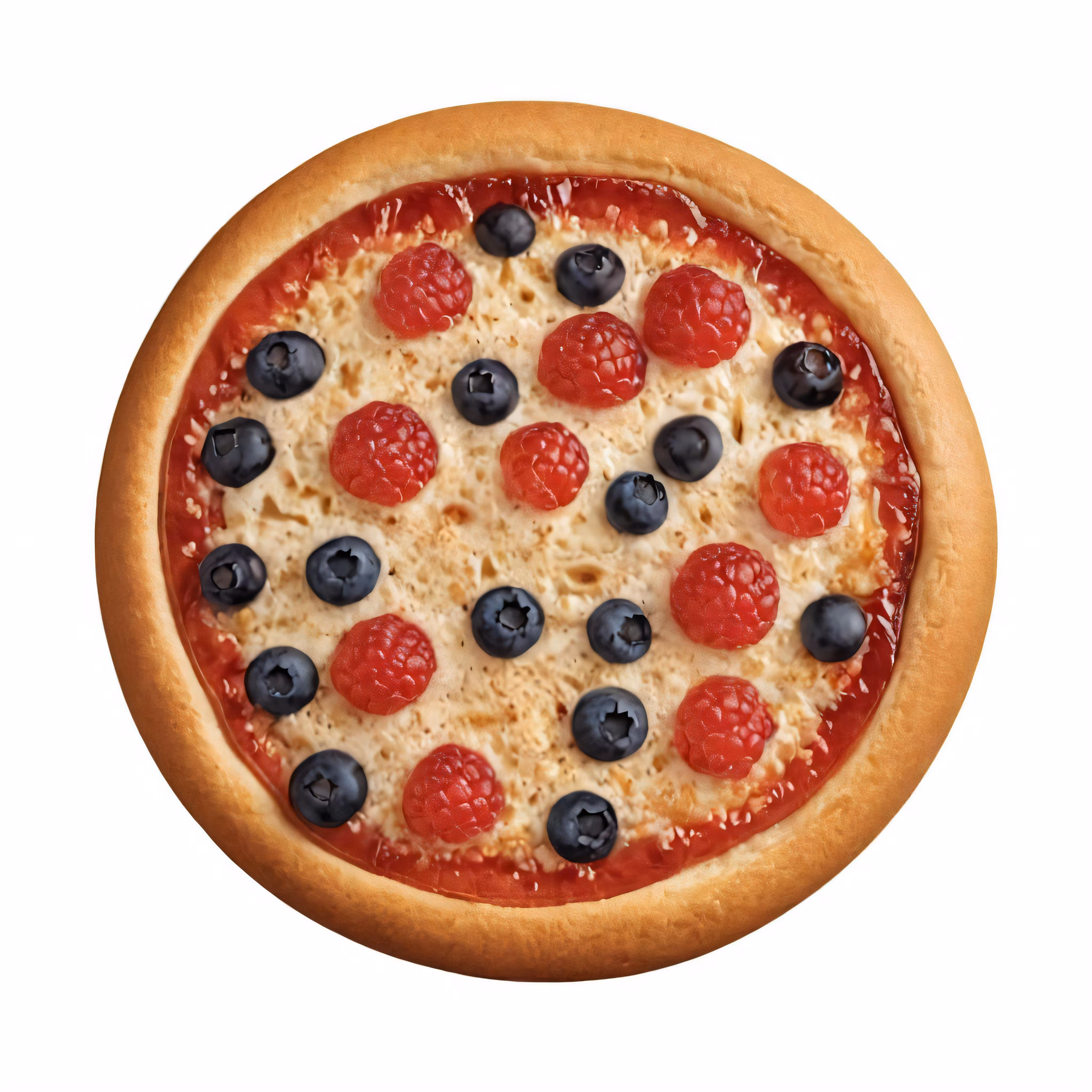 High resolution picture, free to use, a delicious pizza with berries and blueberries arranged on top