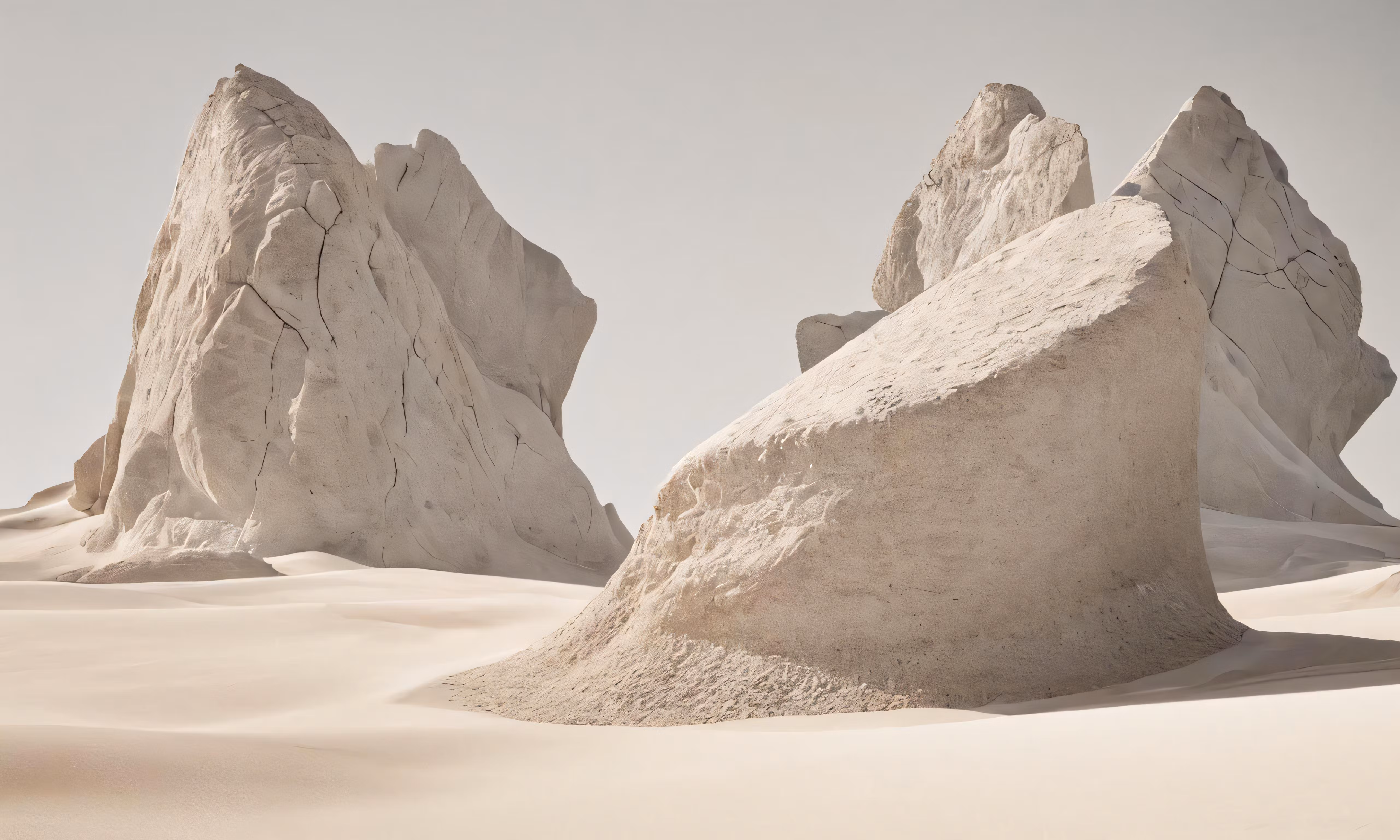 High resolution picture, free to use, a desert scene with large rocks and small snow mounds