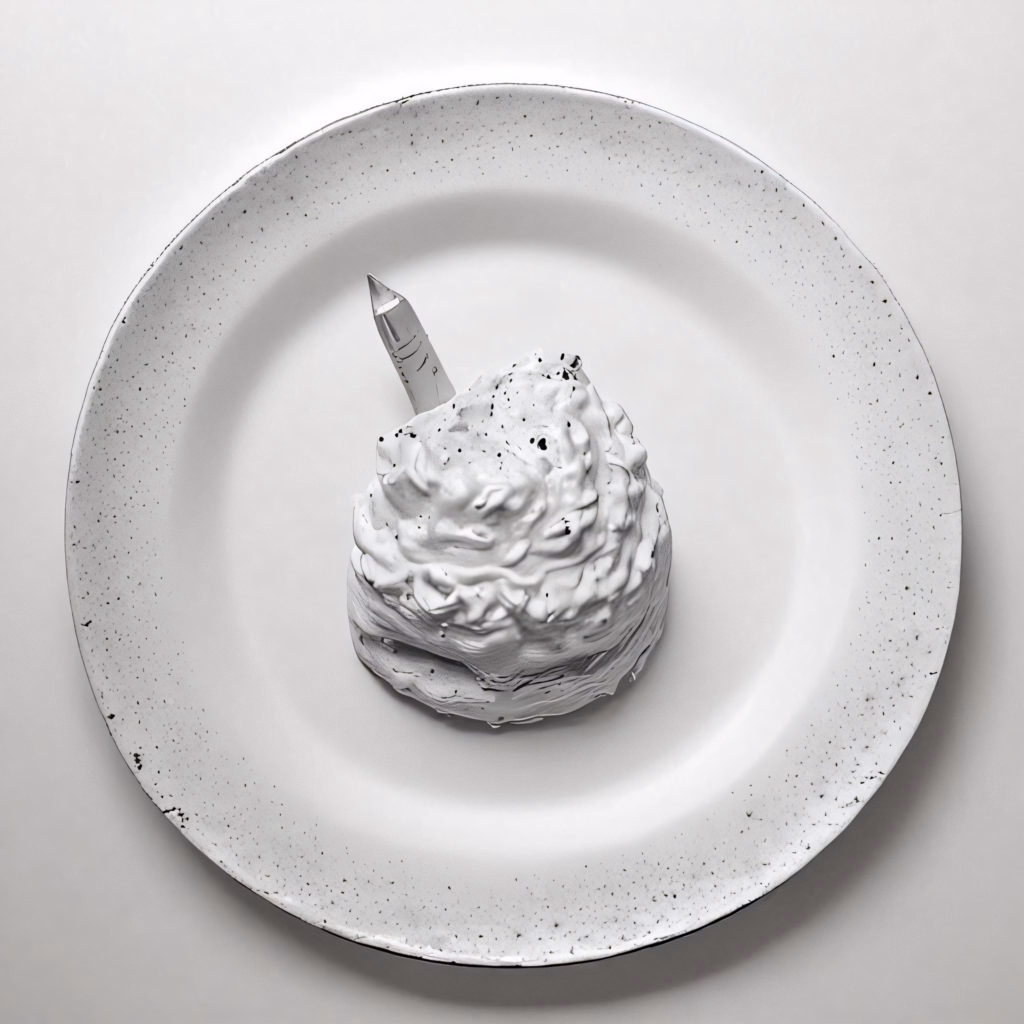 High resolution picture, free to use, a dessert is on a white plate with a knife