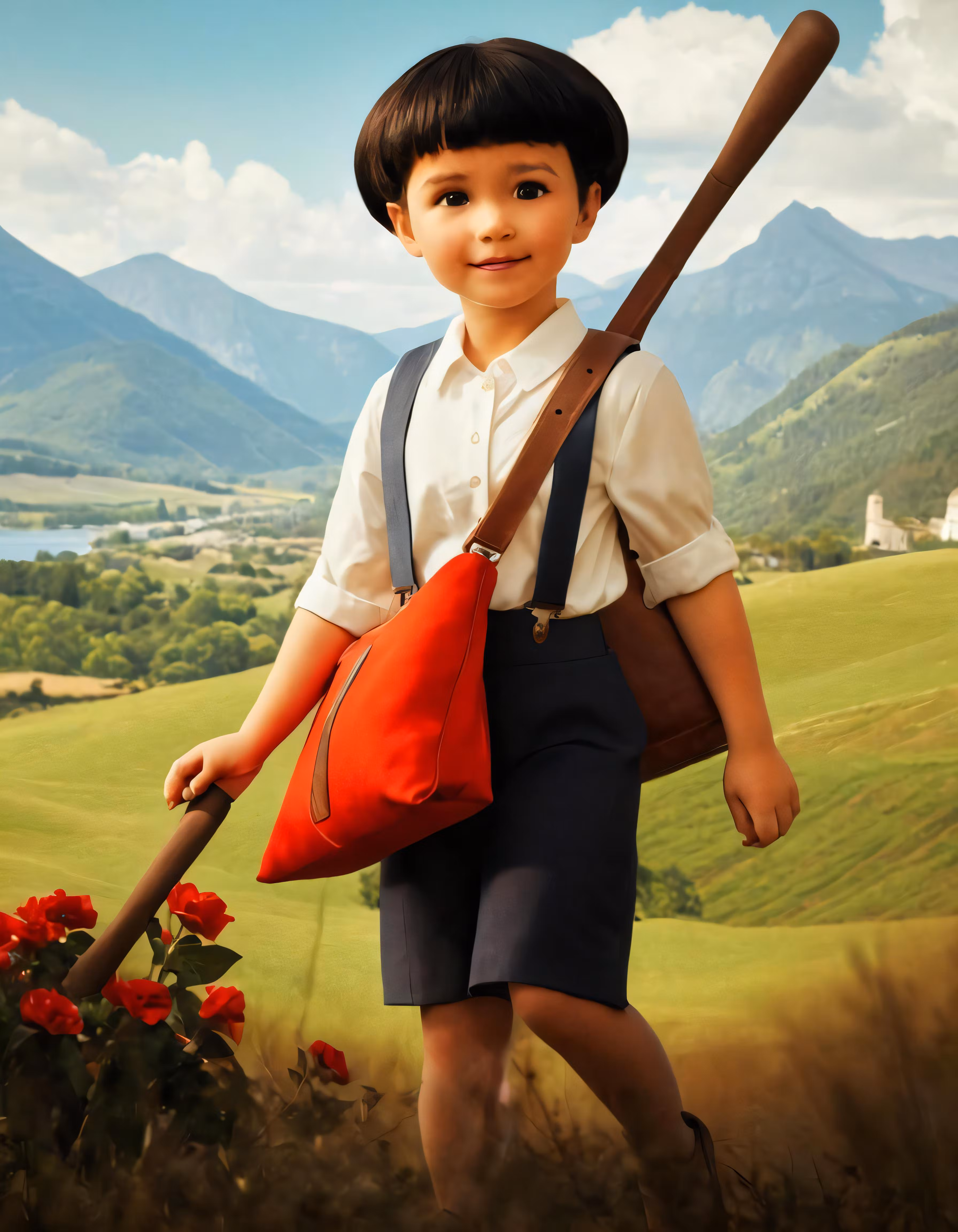 High resolution picture, free to use, a digital painting of a boy with a baseball bat